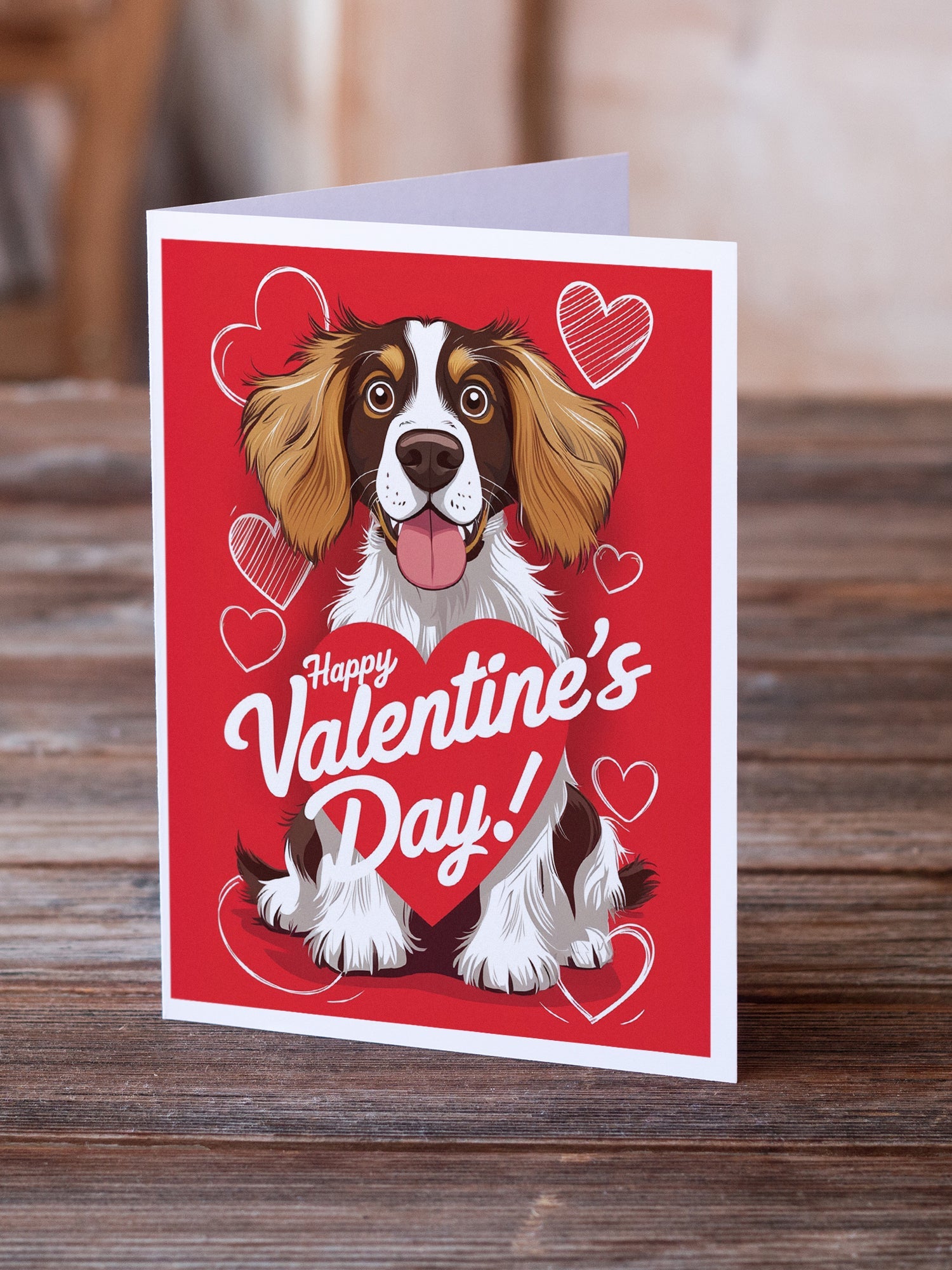 Greeting Cards Pack of 8 featuring breed specific Welsh Springer Spaniel artwork. Celebrate Valentine's Day with this Valentine's Day . Celebrate special moments with Caroline's Treasures Printed Greeting Card Pack. This pack includes eight beautifully folded 5x7 cards, accompanied by eight matching white envelopes. With blank interiors, these cards provide ample space for your personalized messages and heartfelt holiday greetings. Each card features captivating full-color artwork, meticulously printed in our facility on high-quality 80 lb cover stock or 216 GSM. The super smooth finish of the white cards enhances the visual impact of the artwork, creating a truly stunning presentation. Designed by our talented in-house artists or licensed artists, the artwork on these cards showcases their creativity and attention to detail. From vibrant illustrations to captivating designs, each card tells its own unique story. Whether it's for birthdays, anniversaries, holidays, or any special occasion, Caroline's Treasures Greeting Card Pack is the perfect way to convey your heartfelt sentiments. Share joy, love, and warm wishes with these exquisite cards and make every moment unforgettable.