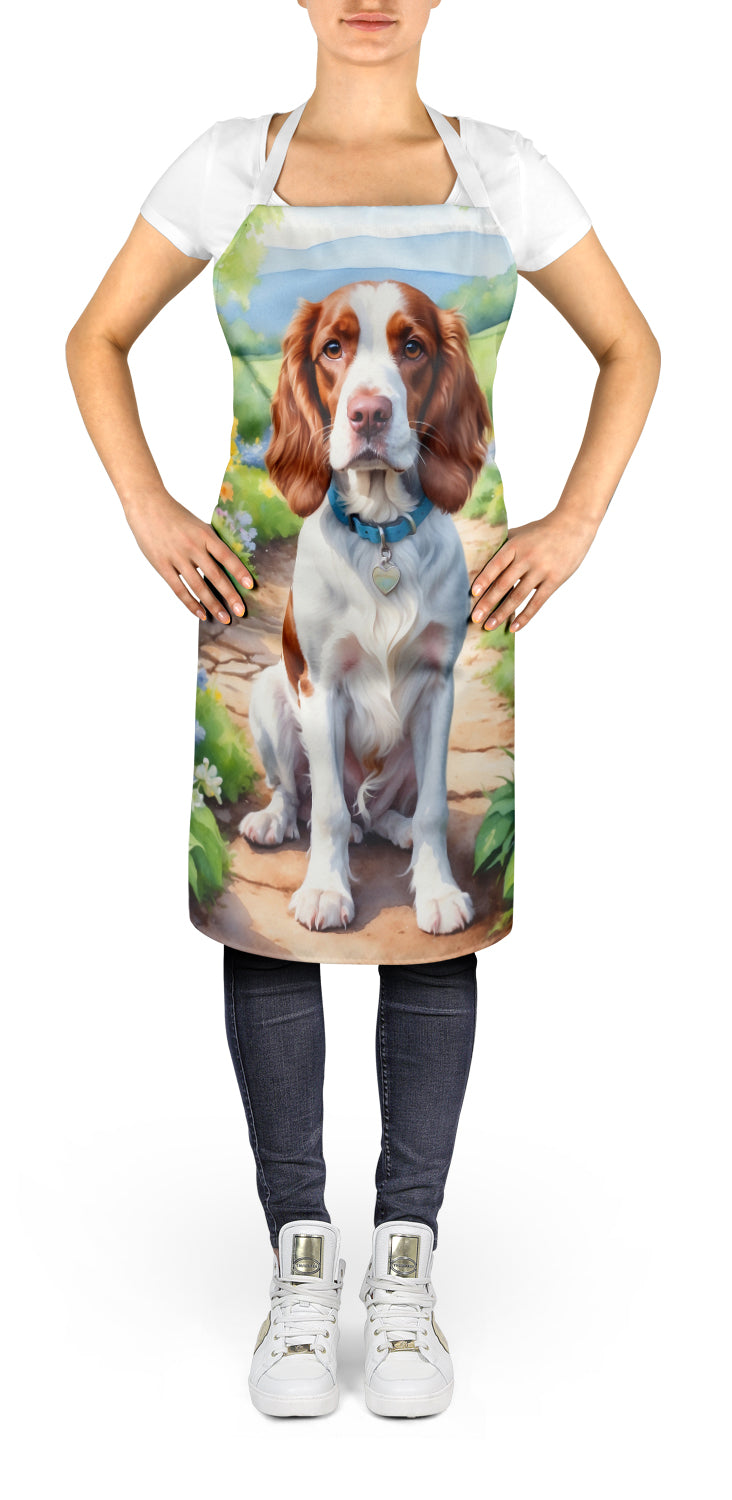 Decorate your space with our Welsh Springer Spaniel artwork on a Apron. Bring a bit of Spring into your home with a Spring Apron. Elevate your cooking, baking, and grilling experiences with our versatile Kitchen or BBQ Apron. This Bib Style apron isn't just limited to culinary activities - it also serves as an excellent baking apron, artist apron, server apron, gardening apron, or even a dog grooming apron. The apron showcases vibrant full-color artwork contributed by one of our talented artists, bringing a dash of style to your daily tasks. With dimensions of approximately 27"W x 30"H, it provides ample coverage to protect your clothing from spills and splashes. Our apron is meticulously crafted from 100% Ultra Spun Polyester, known for its durability and lightweight nature. The apron comes with white tie straps, ensuring a comfortable and adjustable fit for all. It's a perfect choice for kitchen apron enthusiasts, whether you are a woman or a man. Designed for easy maintenance, this apron is fully machine washable. The quick-drying polyester material actively reduces staining, keeping your apron looking fresh and new for longer. Our beautifully designed apron isn't just a functional kitchen accessory - it's a fashion statement in the culinary world!