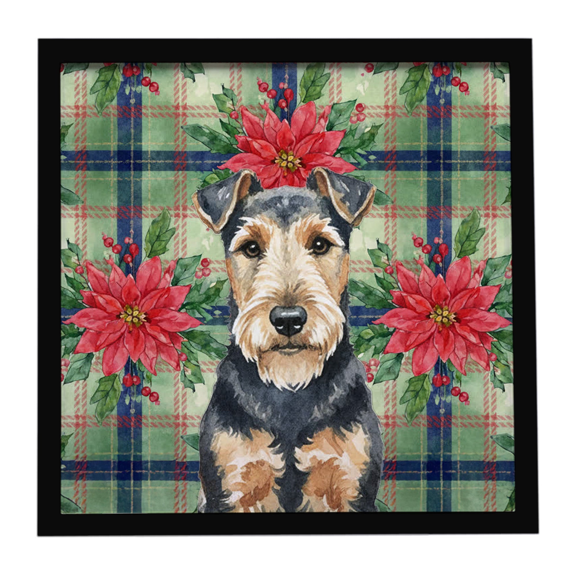 Framed Metal Print featuring breed specific Welsh Terrier artwork. Celebrate Christmas with this Christmas Framed Metal Print. Looking for wall art that�s stylish, safe, and made to last? Our 8x8 Framed Metal Prints are designed with modern living in mind. Each piece features original artwork printed on durable aluminum, set in a sleek frame that measures 3/4 inch deep for a clean, contemporary finish. Unlike glass prints, these are lightweight, shatter-free, and family-safe. Perfect for kitchens, bathrooms, or covered porches where traditional d�cor might not hold up. The built-in sawtooth hanger molded into the back makes it easy to hang right out of the box�just use your own nails or screws. Cleaning is simple too: a quick wipe with a damp cloth and mild soap keeps your artwork looking vibrant. Proudly made in Alabama, every print supports our community of artists while adding personality and charm to your home.