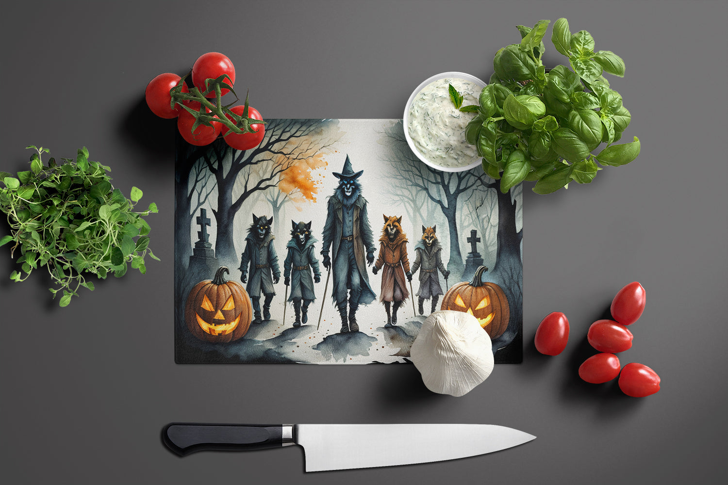 Werewolves Spooky Halloween Glass Cutting Boards – Durable, Decorative Kitchen Art Large