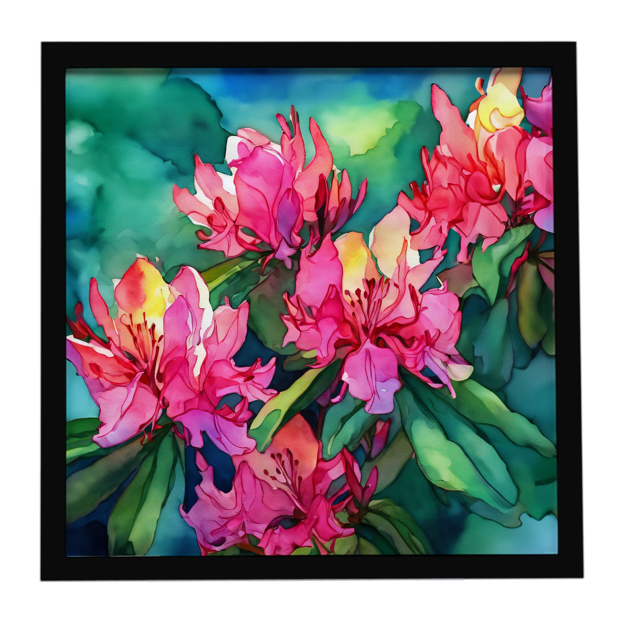 Framed Metal Print featuring breed specific West Virginia Rhododendrons artwork. Looking for wall art that’s stylish, safe, and made to last? Our 8x8 Framed Metal Prints are designed with modern living in mind. Each piece features original artwork printed on durable aluminum, set in a sleek frame that measures 3/4 inch deep for a clean, contemporary finish. Unlike glass prints, these are lightweight, shatter-free, and family-safe. Perfect for kitchens, bathrooms, or covered porches where traditional décor might not hold up. The built-in sawtooth hanger molded into the back makes it easy to hang right out of the box—just use your own nails or screws. Cleaning is simple too: a quick wipe with a damp cloth and mild soap keeps your artwork looking vibrant. Proudly made in Alabama, every print supports our community of artists while adding personality and charm to your home.