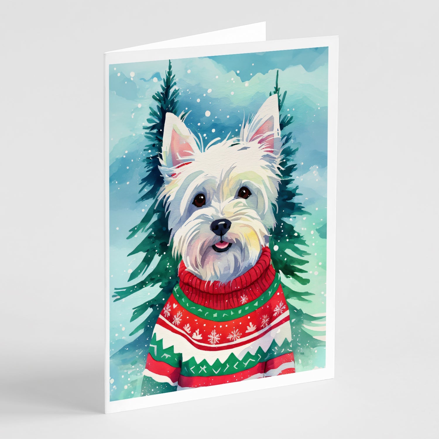 Decorate your space with our Christmas West Highland White Terrier Westie artwork on a . Celebrate special moments with Caroline's Treasures Printed Greeting Card Pack. This pack includes eight beautifully folded 5x7 cards, accompanied by eight matching white envelopes. With blank interiors, these cards provide ample space for your personalized messages and heartfelt holiday greetings. Each card features captivating full-color artwork, meticulously printed in our facility on high-quality 80 lb cover stock or 216 GSM. The super smooth finish of the white cards enhances the visual impact of the artwork, creating a truly stunning presentation. Designed by our talented in-house artists or licensed artists, the artwork on these cards showcases their creativity and attention to detail. From vibrant illustrations to captivating designs, each card tells its own unique story. Whether it's for birthdays, anniversaries, holidays, or any special occasion, Caroline's Treasures Greeting Card Pack is the perfect way to convey your heartfelt sentiments. Share joy, love, and warm wishes with these exquisite cards and make every moment unforgettable.