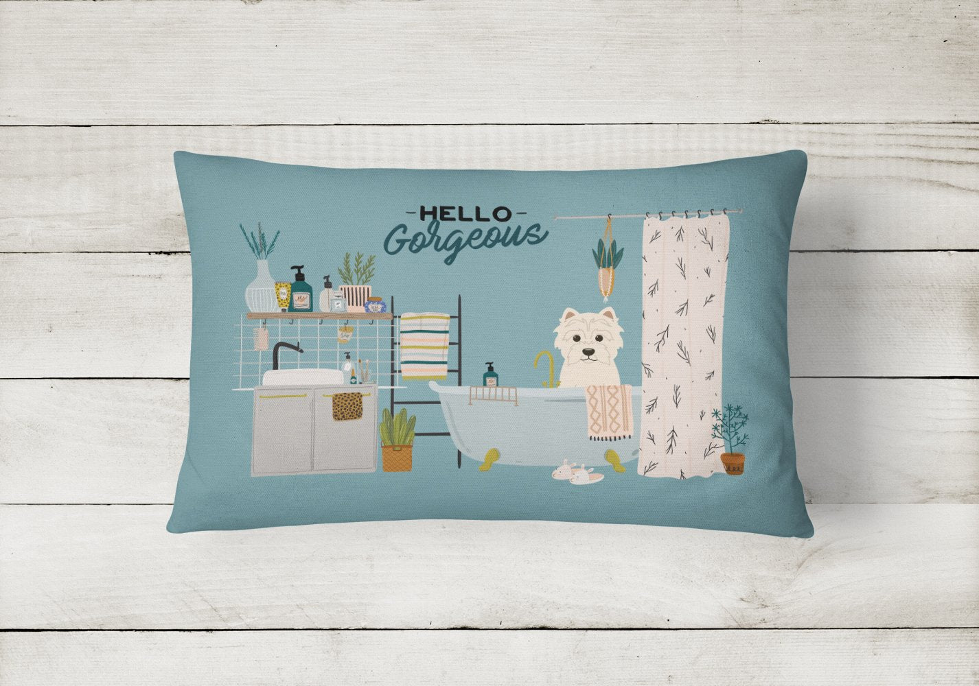 Decorate your space with our West Highland White Terrier artwork on a Pillow. Embrace the fusion of comfort and style with Caroline's Treasures Fabric Decorative Pillow. This 12x16 inch outdoor pillow is designed to complement your patio furniture, adding a splash of color and artistry to your outdoor setting. Constructed with a 100% Polyester Fabric pillow sham filled with a plush pillow form, this cushion is as comfortable as it is durable. Our outdoor pillow utilizes a novel fabric, meticulously woven for enhanced water resistance. This soft canvas material is equally suited for your indoor couch as well as outdoor settings such as the patio, porch, or veranda. To ensure enduring vibrance, we employ colorfast dyes resistant to fading even when subjected to weather elements. The making of this pillow involves the delicate sewing together of three fabric pieces to create a sham, into which a polyester insert is carefully placed. The result is an overstuffed pillow that tenaciously holds its shape. With both the sham and the pillow insert crafted in the United States, these handmade pillows are a testament to superior local craftsmanship. Note that as these pillows are handmade, sizes may slightly vary, enhancing their unique appeal. Enjoy comfort in style with Caroline's Treasures Fabric Decorative Pillow.