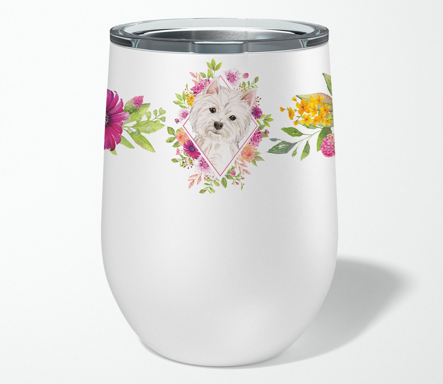 Decorate your space with our West Highland White Terrier artwork on a 12 oz Stainless Stemless Wine Glass. Enjoy your favorite beverage in style and comfort with our beautifully crafted 12-ounce Double Wall Vacuum Insulated Stainless Steel Stemless Wine Glass. This stylish tumbler, with its sleek and modern design, caters to both men and women who appreciate quality and elegance in their drinkware. This stemless wine glass boasts a double-walled vacuum insulated design to keep your wine at the perfect temperature for longer, providing you with an exceptional drinking experience. The tumbler's stainless steel construction ensures durability, while its easy-to-grasp shape offers a comfortable hold for prolonged enjoyment. With safety and health as our top priority, our wine glass is 100% free from BPA and Phthalates. It features a secure lid with an easy opening for hassle-free sipping. The vibrant color artwork adds a personalized touch, enhancing your overall drinking experience. Although sturdy, we recommend hand washing this product to maintain its unique qualities. Embrace sustainability by replacing disposable plastic bottles with our reusable Tumblers. A simple choice that can significantly reduce environmental pollution. Perfectly packed in a gift box, our tumbler is an excellent gift choice for your loved ones. Elevate your wine-drinking experience and make a positive impact on the environment with our remarkable tumbler._x000B_