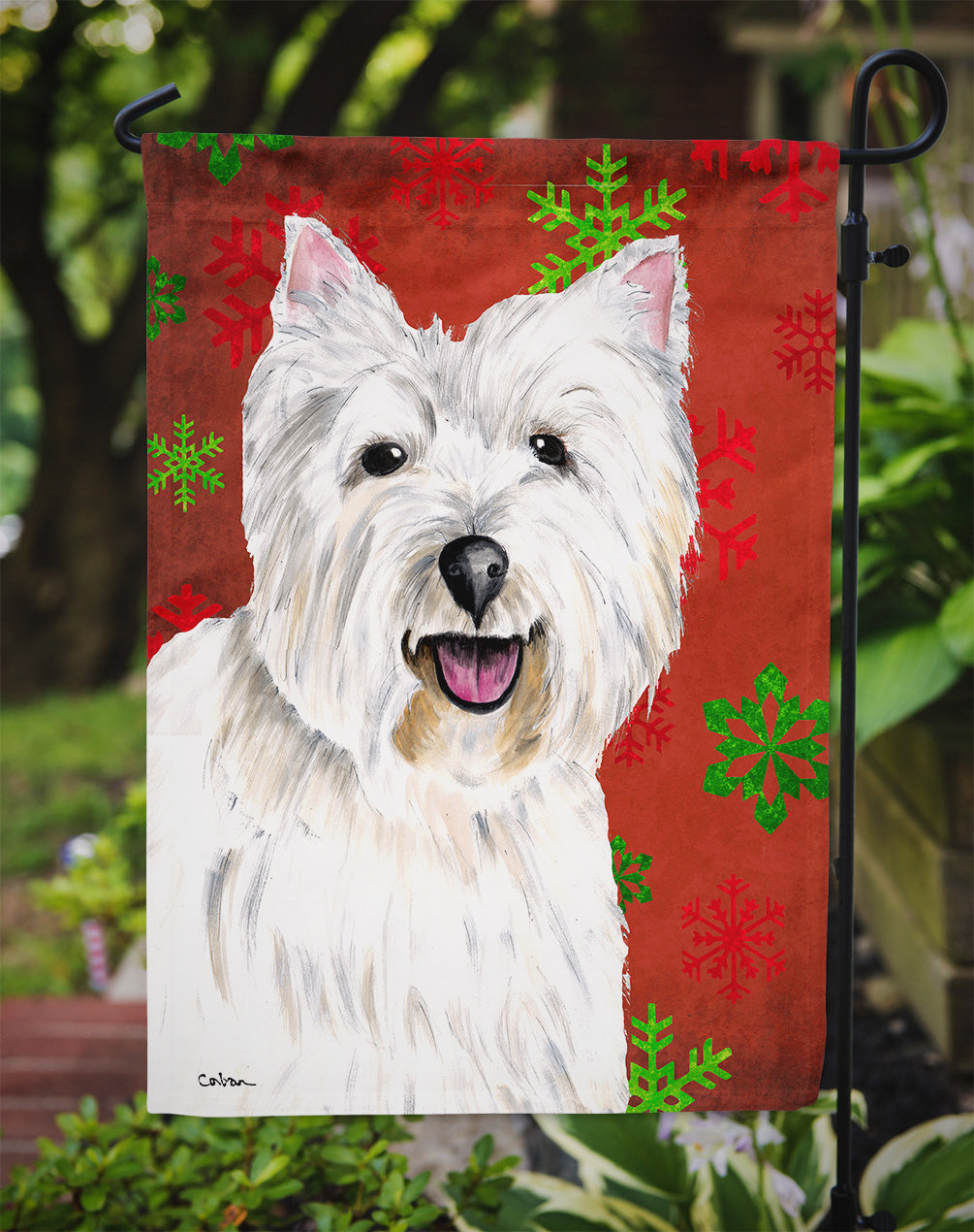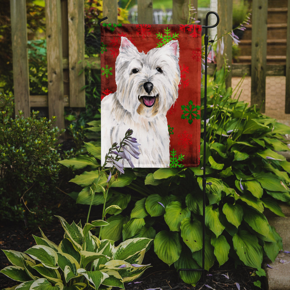 Westie Red and Green Snowflakes Holiday Christmas Garden Flag – Decorative Outdoor Yard Flag