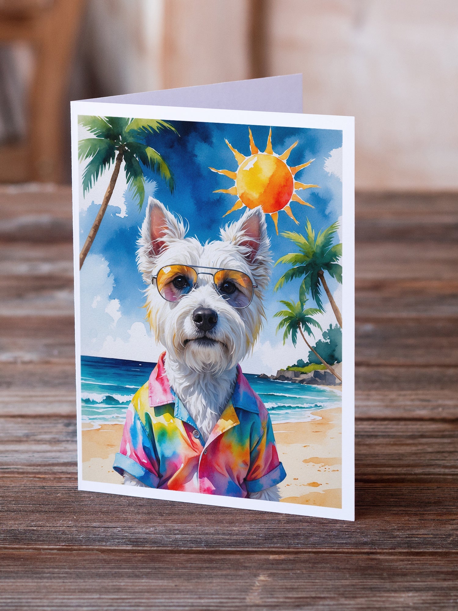 Greeting Cards Pack of 8 featuring breed specific West Highland White Terrier artwork. Celebrate special moments with Caroline's Treasures Printed Greeting Card Pack. This pack includes eight beautifully folded 5x7 cards, accompanied by eight matching white envelopes. With blank interiors, these cards provide ample space for your personalized messages and heartfelt holiday greetings. Each card features captivating full-color artwork, meticulously printed in our facility on high-quality 80 lb cover stock or 216 GSM. The super smooth finish of the white cards enhances the visual impact of the artwork, creating a truly stunning presentation. Designed by our talented in-house artists or licensed artists, the artwork on these cards showcases their creativity and attention to detail. From vibrant illustrations to captivating designs, each card tells its own unique story. Whether it's for birthdays, anniversaries, holidays, or any special occasion, Caroline's Treasures Greeting Card Pack is the perfect way to convey your heartfelt sentiments. Share joy, love, and warm wishes with these exquisite cards and make every moment unforgettable.