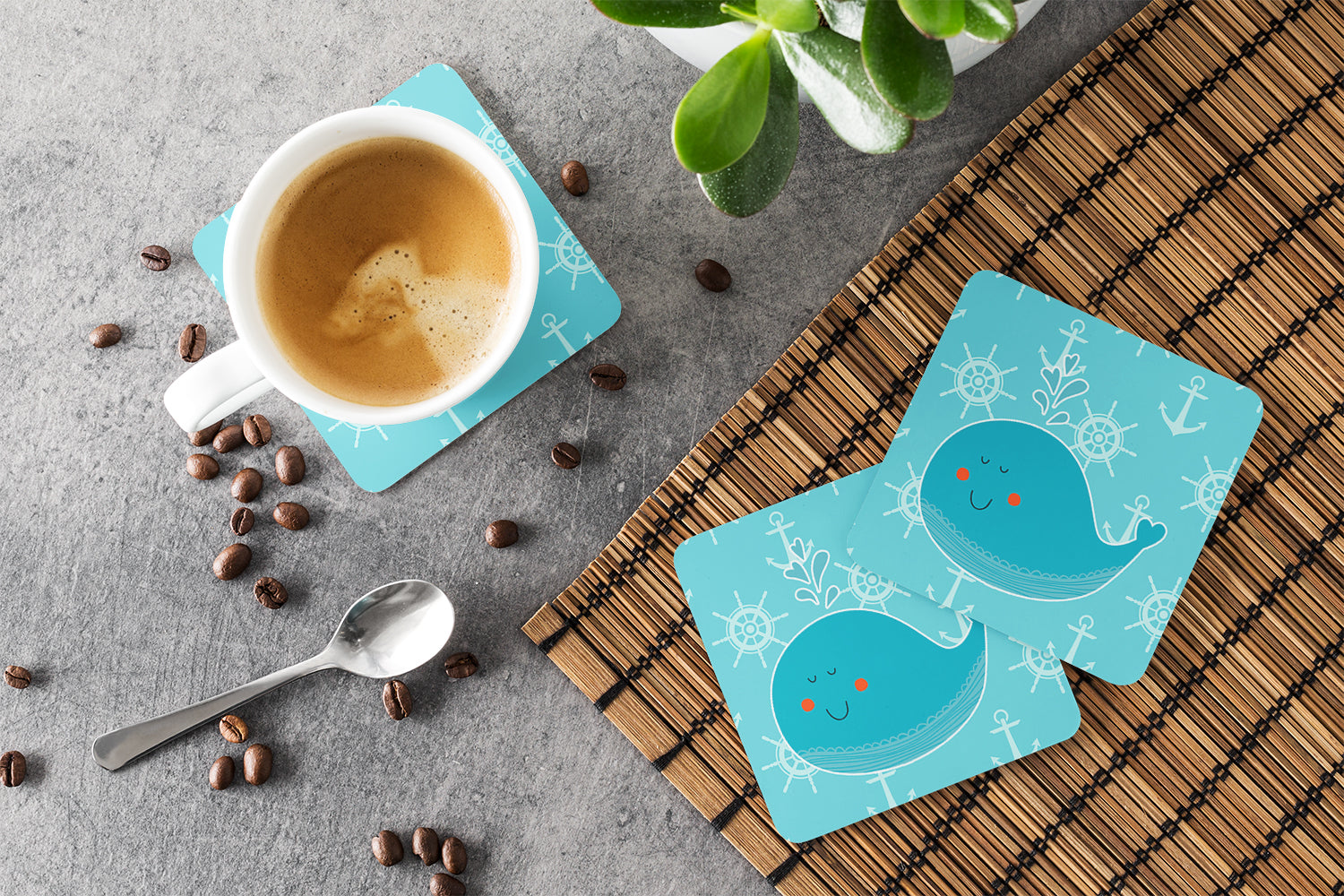 Whale with Anchors Foam Coaster BB6765FC