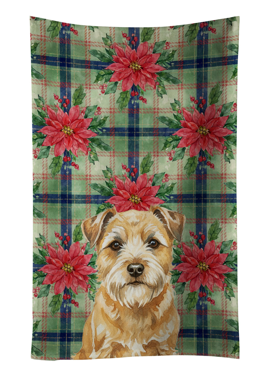 Kitchen Towel featuring breed specific Border Terrier artwork. Celebrate Christmas with this Christmas Kitchen Towel. Bring cozy holiay charm to your sink or powder room with a plush velour towel featuring original watercolor artwork. The front is a soft, color-rich minky polyester that polishes glassware to a brilliant shine; the back is 100% white cotton terry loop for quick absorbency on hands, dishes, and counters. Artwork is dyed into the fibers for lasting color that won’t crack or peel. Finished edges keep the shape wash after wash. Size: 15" x 25". Machine wash; tumble dry low. Designed and printed in the USA.