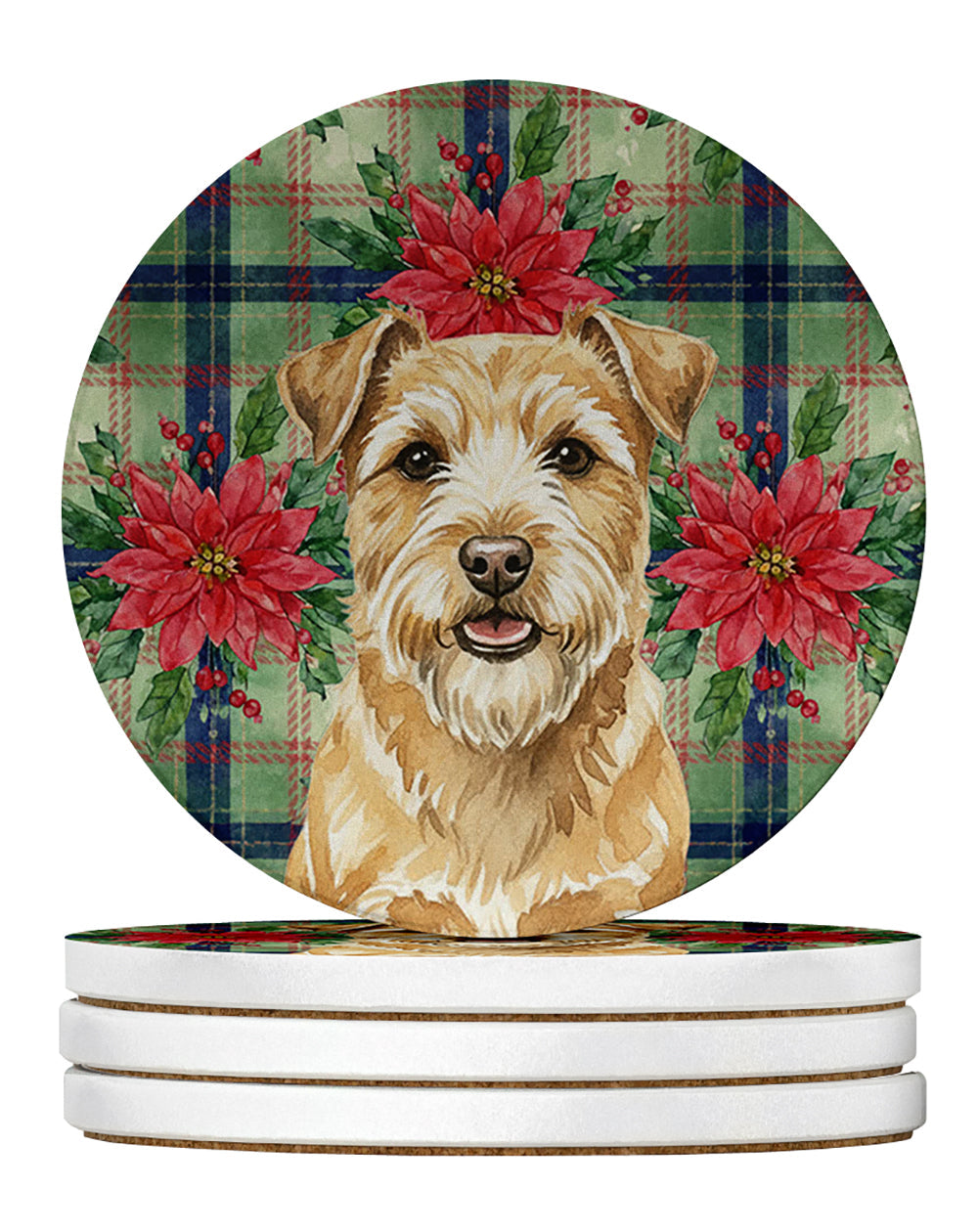 Large Sandstone Coasters Pack of 4 featuring breed specific Norfolk Terrier artwork. Celebrate Christmas with this Christmas Sandstone Coasters Pack of 4. Introducing Caroline's Treasures Large Sandstone Coasters Pack of 4, the perfect addition to your home decor. Each coaster measures nearly 4 inches and is made from absorbent sandstone with a cork backing. Designed and printed in the United States, these coasters feature artwork from Caroline's Treasures' talented artists. Protect your countertops and tables from hot and cold drink condensation with these absorbent coasters. They efficiently absorb moisture, ensuring your surfaces stay dry and clean. Choose from a wide range of designs to update and enhance your decor or give them as a thoughtful gift for any occasion. Cleaning is a breeze�simply wipe the coaster with a damp towel to remove any spills or stains. Each set comes in a brown gift box, making it ready to be wrapped for that special person in your life. These absorbent sandstone coasters also make an excellent housewarming gift, providing both practicality and style. Celebrate birthdays, Mother's Day, Father's Day, Thanksgiving, Christmas, Teacher's Appreciation Day, or simply show someone you care with these versatile and charming coasters. Caroline's Treasures Large Sandstone Coasters Pack of 4 is the perfect happy gift for any occasion.