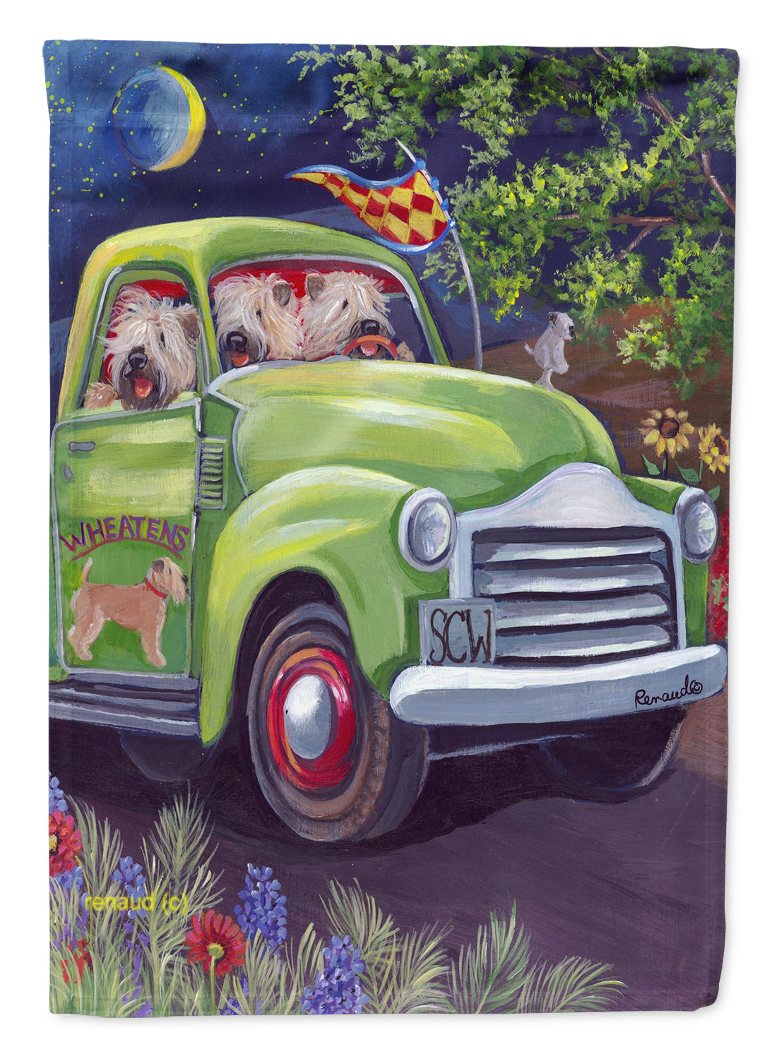 Decorate your space with our Wheaten Terrier artwork on a Garden Flag. Enhance the beauty of your garden, patio, or yard with Caroline's Treasures Decorative Garden Flag, proudly made in the USA. Crafted from two pieces of thick, double-sided polyester fabric, this 2-ply garden flag is designed to withstand various weather conditions, making it water-resistant and weatherproof. Featuring correctly readable words on both sides, this garden flag offers a delightful visual experience from any angle. With its heavier weight, it stands out among other garden flags, ensuring stability and durability even in wind, rain, and snow. Measuring approximately 11 1/4 inches by 15 1/2 inches, this flag allows you to personalize your outdoor decor. It comes with a 1 1/2-inch sleeve sewn in, allowing easy attachment to any standard garden flag stand or garden size porch hanger (sold separately). Make a statement in your outdoor space with Caroline's Treasures Decorative Garden Flag, a vibrant and high-quality flag that adds color and personality to your surroundings. Proudly made in the USA, it's a symbol of quality craftsmanship and attention to detail.