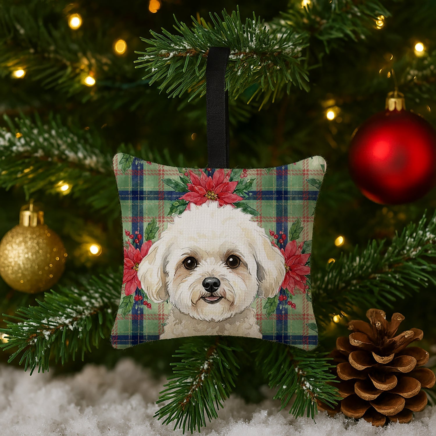 Hanging Square Fabric Ornament 3.5 x 3.5 featuring breed specific Bichon Frise artwork. Celebrate Christmas with this Christmas Pillow Ornament. Caroline's Treasures Mini Hanging Square Fabric Ornament approximately 3.5 inches by 3.5 inches. Add a pop of personality to any space with our collectible fabric ornament, proudly Made in the USA. Perfect for doorknobs, cabinet pulls, kitchen hooks, Easter trees, Christmas trees, rear-view mirrors and more, this petite pillow like ornament transforms even the smallest corner into a statement of style. USA Craftsmanship: Sewn, stuffed and printed in Alabama for quality you can feel while supporting American jobs. Collect them all - mix and match Christmas, Patriotic Stars and Stripes, Easter Pastels, Valentine Hearts, Thanksgiving Harvest and more to celebrate every season in signature Caroline's Treasures style.