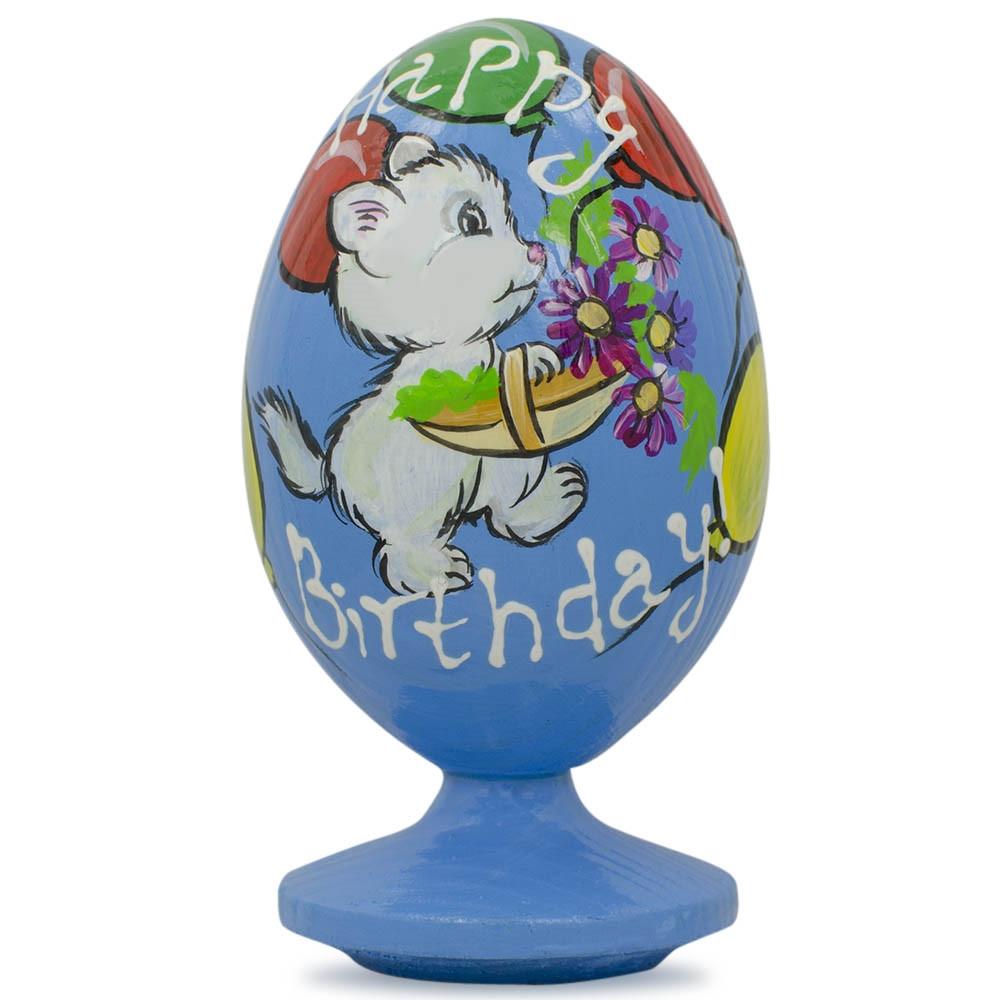 This beautiful hand painted egg figurine depicts a kitty with flowers and balloons, with the words Inches Happy Birthday Inches. A skilled artist makes this beautiful egg standout, making it a perfect birthday gift.