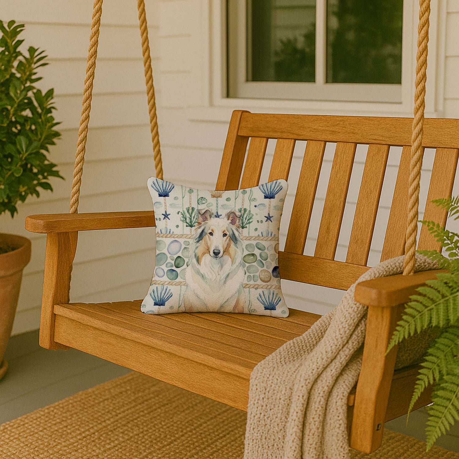 Throw Pillow featuring breed specific Collie artwork. Add a touch of vibrancy and comfort to your outdoor seating with Caroline's Treasures Fabric Decorative Pillow. Measuring approximately 14 inches by 14 inches, this outdoor pillow is crafted to elevate the appeal of your patio furniture, infusing it with vivid color and artistic flair. The pillow includes a 100% Polyester Fabric sham filled with a quality pillow form to provide superior comfort. Innovatively made from our brand new material, specifically woven for its water resistance, this pillow is designed for durability. The soft canvas fabric offers versatility in use, fit for your indoor couch or your outdoor patio, porch, or veranda. The fabric is dyed with colorfast dyes built for resilience against weather conditions, ensuring the pillow retains its beauty over time. Constructed by sewing three fabric pieces to create a sham, the polyester insert is then nestled inside to form the pillow, resulting in an overstuffed pillow that maintains its shape. Both the sham and the pillow insert are proudly made in the United States. As the pillows are handcrafted, there may be minor variations in size, further enhancing their unique charm. Experience comfort in style with Caroline's Treasures Fabric Decorative Pillow.