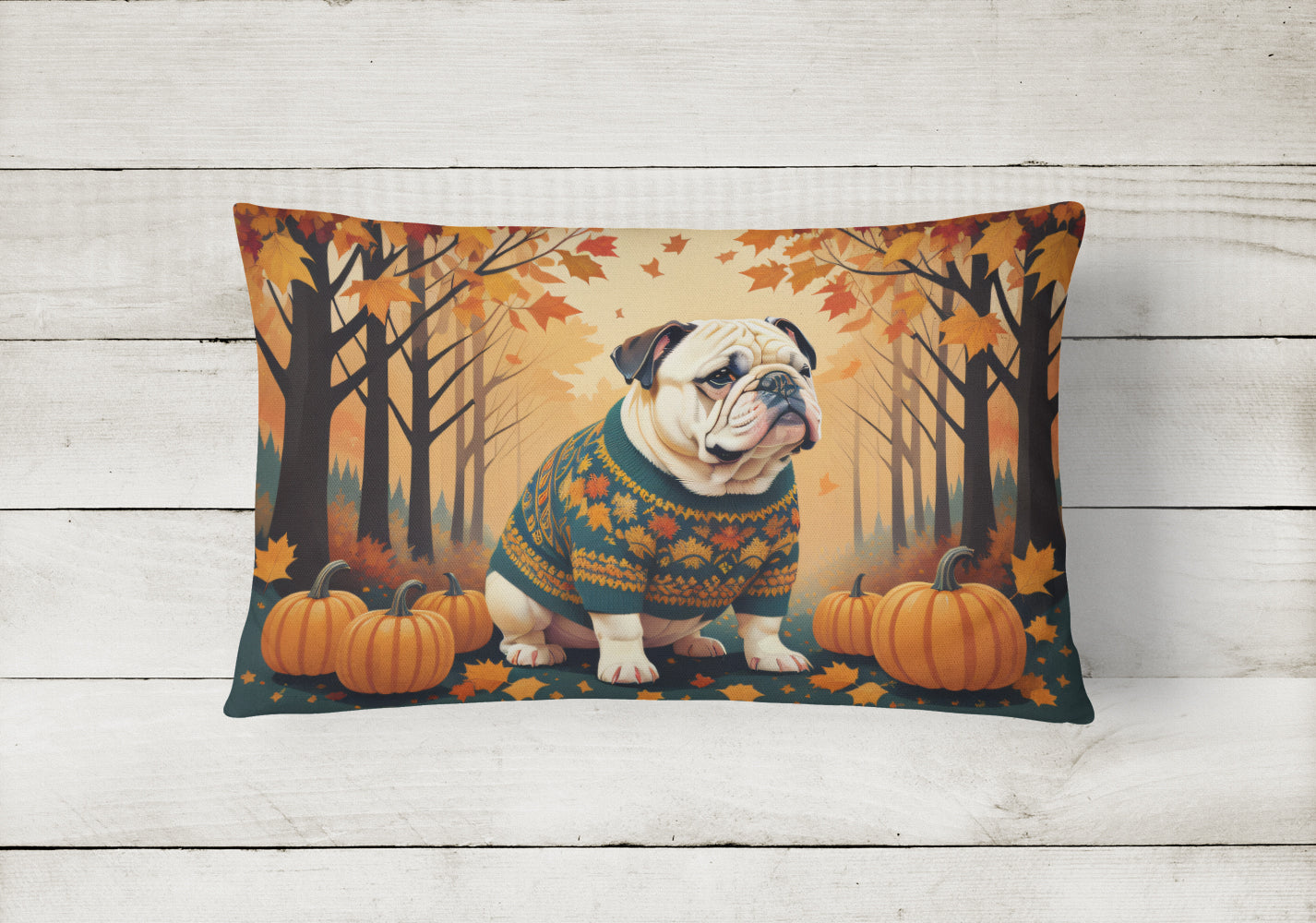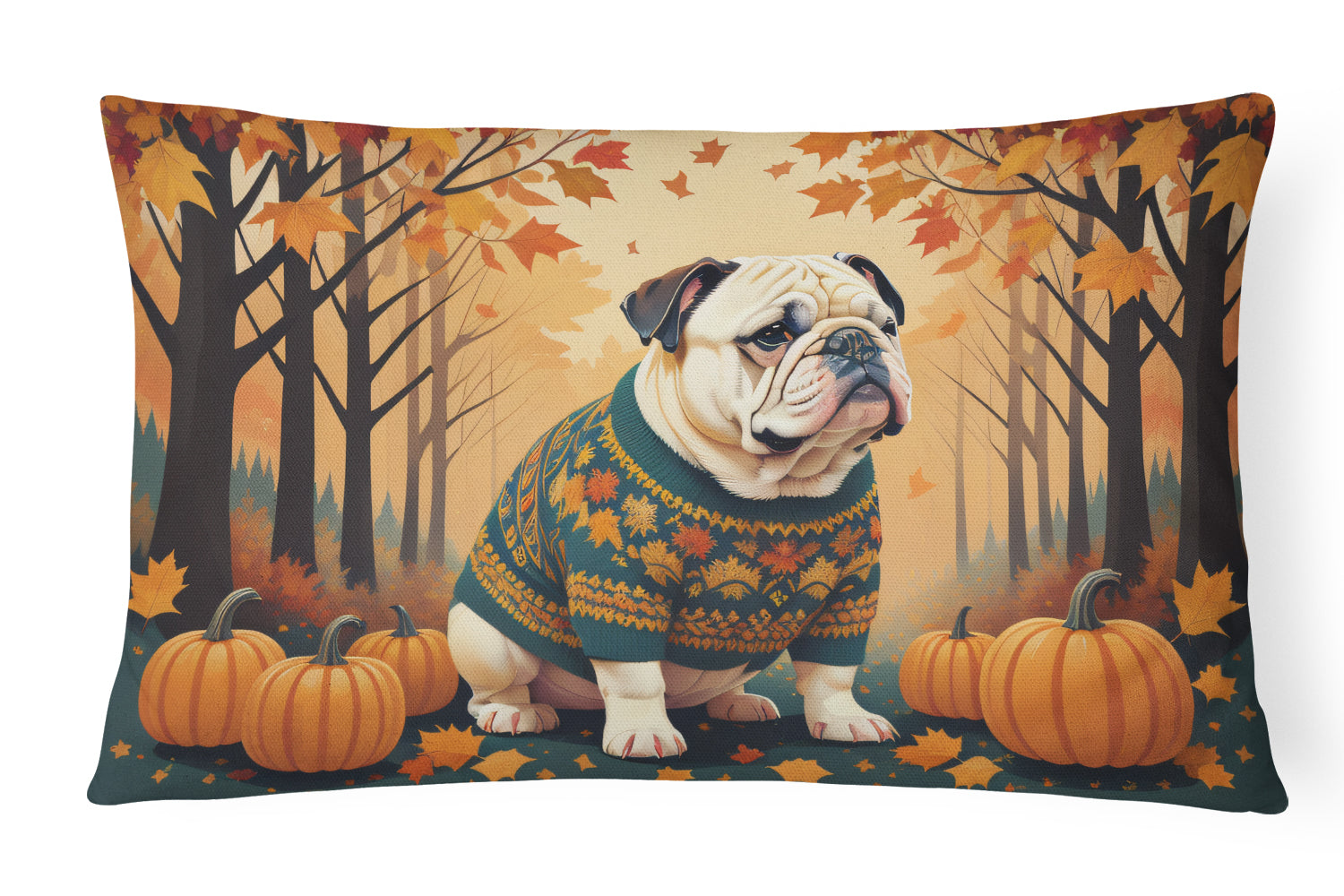 Decorate your space with our English Bulldog artwork on a Pillow. Bring a bit of Fall into your home with a Fall Pillow. Embrace the fusion of comfort and style with Caroline's Treasures Fabric Decorative Pillow. This 12x16 inch outdoor pillow is designed to complement your patio furniture, adding a splash of color and artistry to your outdoor setting. Constructed with a 100% Polyester Fabric pillow sham filled with a plush pillow form, this cushion is as comfortable as it is durable. Our outdoor pillow utilizes a novel fabric, meticulously woven for enhanced water resistance. This soft canvas material is equally suited for your indoor couch as well as outdoor settings such as the patio, porch, or veranda. To ensure enduring vibrance, we employ colorfast dyes resistant to fading even when subjected to weather elements. The making of this pillow involves the delicate sewing together of three fabric pieces to create a sham, into which a polyester insert is carefully placed. The result is an overstuffed pillow that tenaciously holds its shape. With both the sham and the pillow insert crafted in the United States, these handmade pillows are a testament to superior local craftsmanship. Note that as these pillows are handmade, sizes may slightly vary, enhancing their unique appeal. Enjoy comfort in style with Caroline's Treasures Fabric Decorative Pillow.