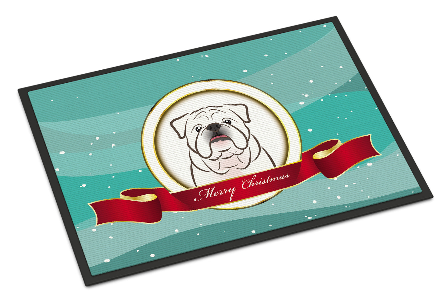 White English Bulldog Merry Christmas Doormat - 24x36 Decorative Floor Mat – Indoor/Outdoor Rug with Artistic Flair BB1530JMAT