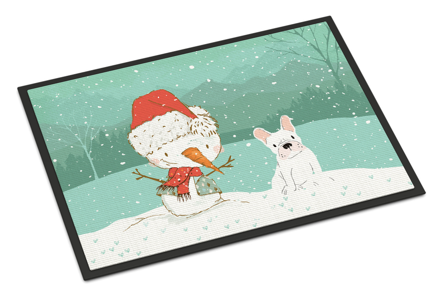 White French Bulldog Snowman Christmas Doormat - 18x27 Decorative Floor Mat – Indoor/Outdoor Rug with Artistic Flair CK2088MAT