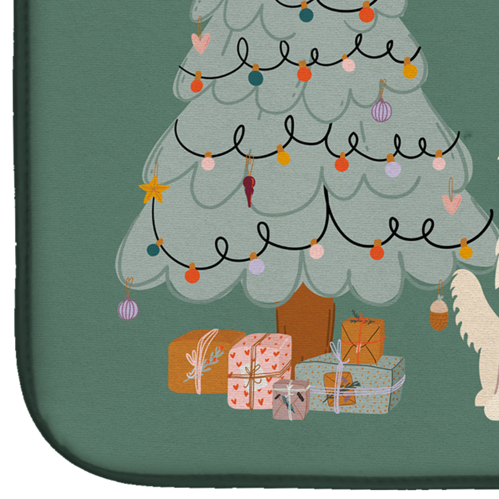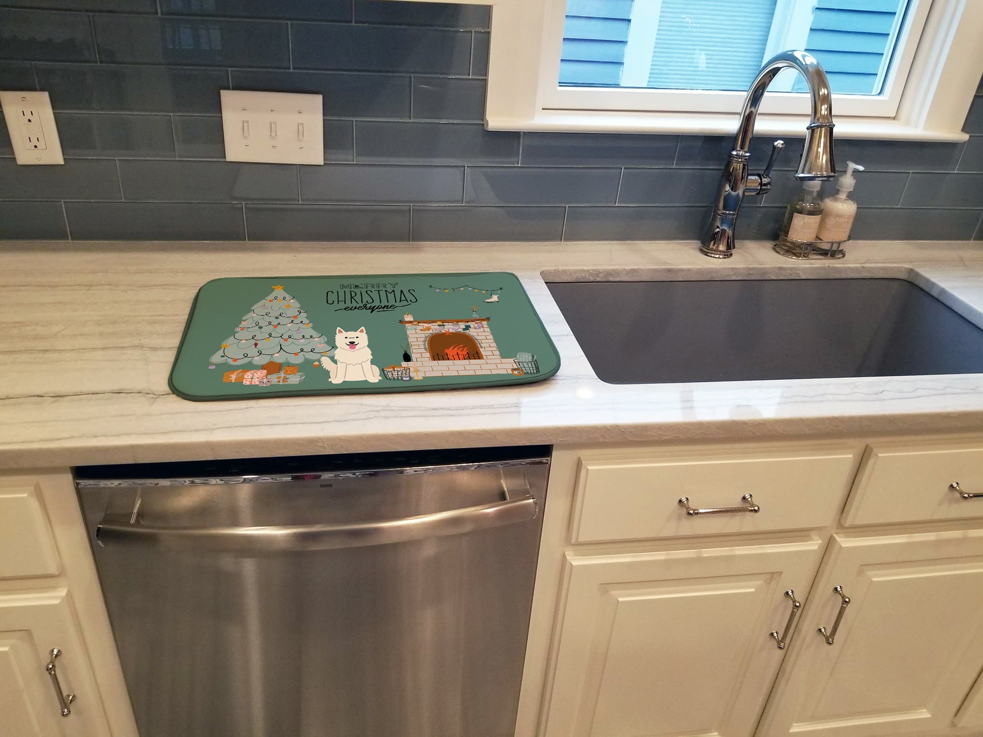 Decorate your space with our Christmas German Shepherd artwork on a Dish Drying Mat. Say goodbye to messy countertops and soggy dish towels with our innovative dish drying mat. Our high-quality dish drying pad is designed to keep your countertops dry while offering a stylish and efficient solution. Whether you're air drying dishes, glasses, stemware, silverware, pots, pans, bottles, or even fruits and vegetables, our dish mat is the perfect choice. The 14 inches x 22 inches size fits most counters and dish drying racks, and the non-slip design ensures stability. Made with water-absorbent polyester and a polyurethane foam insert, our dish drying mat is not only functional but also durable. It's machine washable and printed in the USA for long-lasting use. The beautiful artwork adds flair to your kitchen decor, making it a perfect housewarming gift or present for any occasion. Upgrade your kitchen experience with our absorbent and versatile dish drying mat.