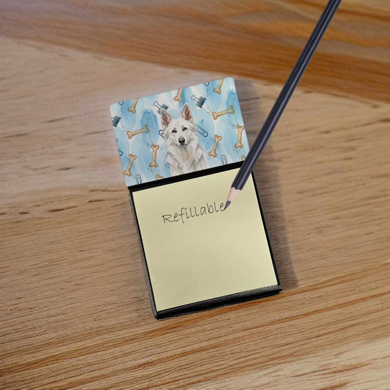 Celebrate the charm of your favorite four-legged coworker with our - My Coworker Watercolor Dog Art Collection. Each sticky note holder showcases vibrant, hand-painted watercolor dog artwork set against a playful, office-inspired background — a fun and functional way to personalize any workspaceCrafted for convenience and style, this refillable sticky note dispenser includes a 3 inches x 3 inches sticky note pad and features a smooth top board printed with original artwork. To refill, simply attach the last sheet of a new pad and a piece of tape — it’s that easy. Whether you’re leaving reminders, jotting quick notes, or gifting it to a fellow dog lover, this decorative sticky note holder makes a thoughtful, practical, and eye-catching addition to desks, kitchen counters, or magnetic surfaces. Add a business-card size magnet to the back (sold separately) to transform it into a handy refrigerator memo station. Perfect for the home office, classroom, or as a gift for colleagues, friends, groomers, or pet sitters — it’s organization with personality.