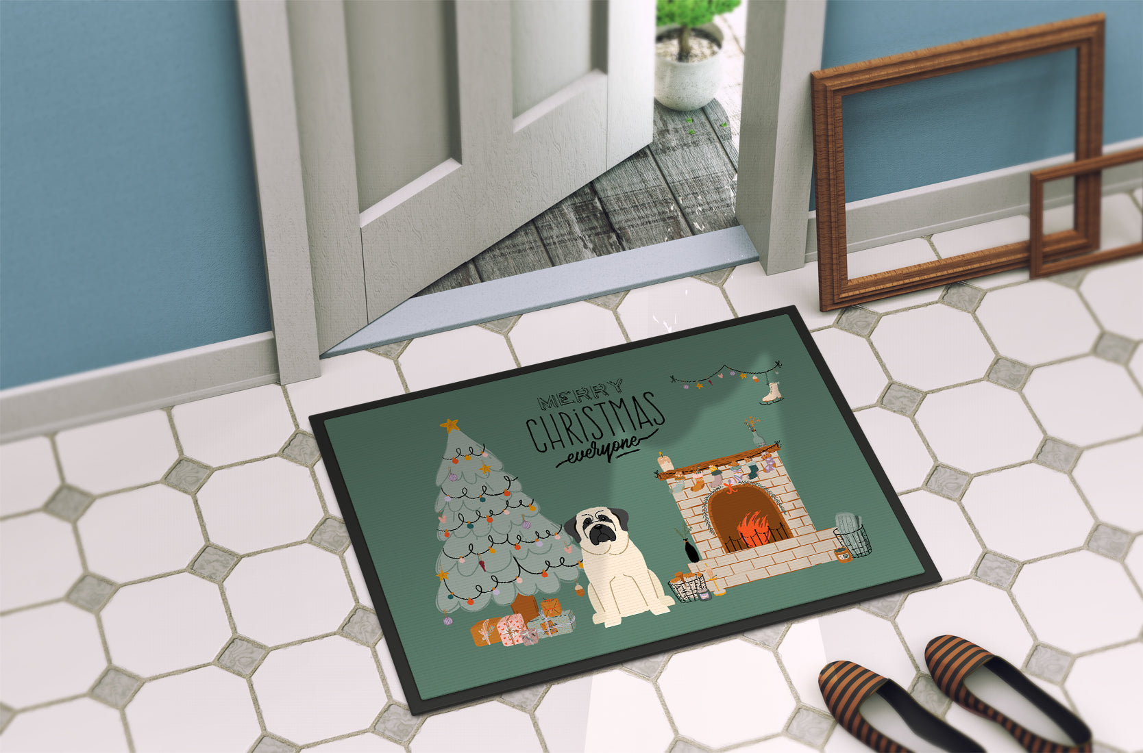 White Mastiff Christmas Everyone Doormat - 24x36 Decorative Floor Mat – Indoor/Outdoor Rug with Artistic Flair CK7580JMAT