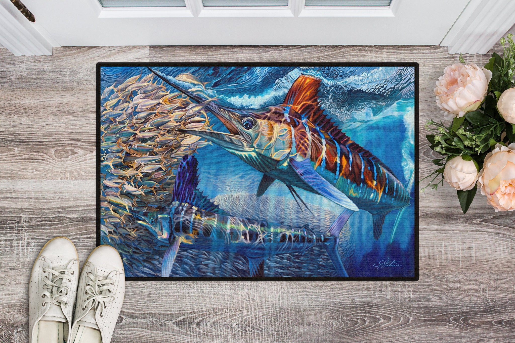 White Night White Marlin Doormat - 24x36 Decorative Floor Mat – Indoor/Outdoor Rug with Artistic Flair JMA2008JMAT