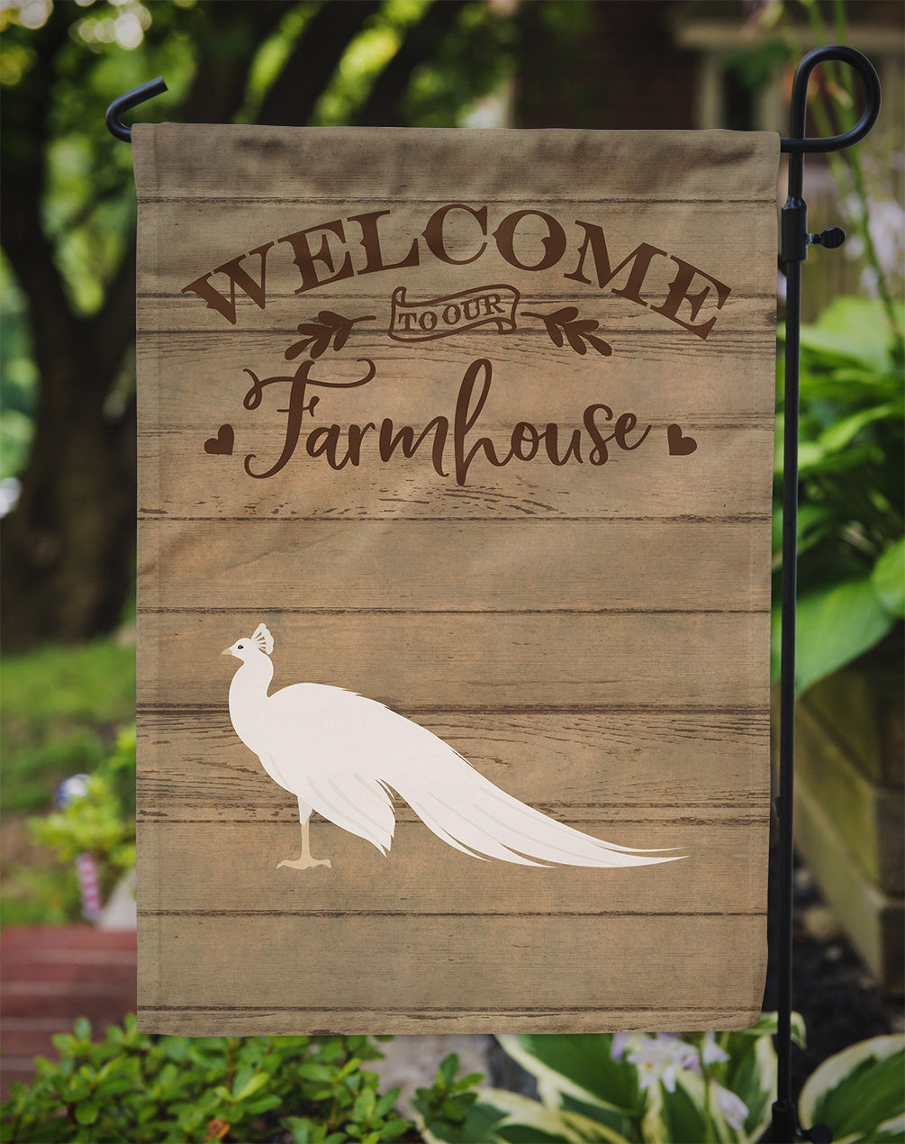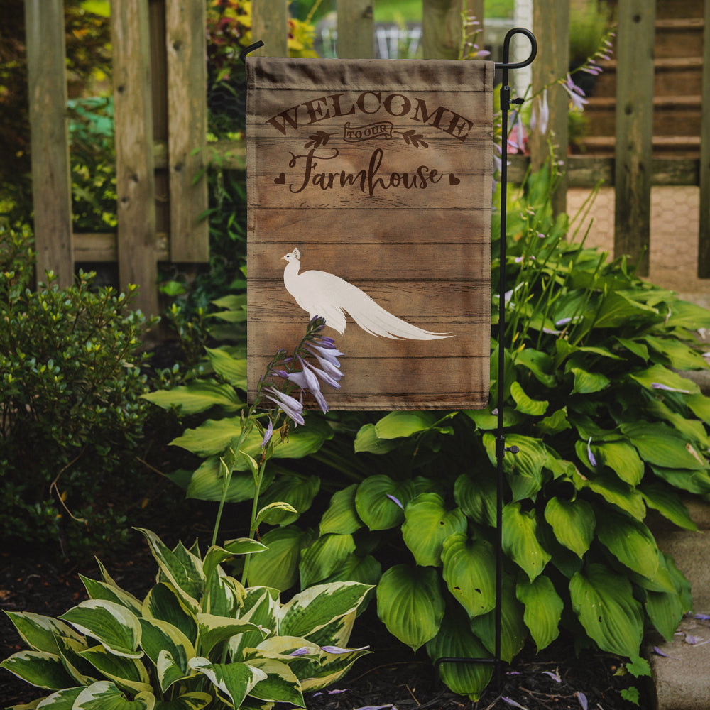 Decorate your space with our White Peacock Peafowl artwork on a Garden Flag. Enhance the beauty of your garden, patio, or yard with Caroline's Treasures Decorative Garden Flag, proudly made in the USA. Crafted from two pieces of thick, double-sided polyester fabric, this 2-ply garden flag is designed to withstand various weather conditions, making it water-resistant and weatherproof. Featuring correctly readable words on both sides, this garden flag offers a delightful visual experience from any angle. With its heavier weight, it stands out among other garden flags, ensuring stability and durability even in wind, rain, and snow. Measuring approximately 11 1/4 inches by 15 1/2 inches, this flag allows you to personalize your outdoor decor. It comes with a 1 1/2-inch sleeve sewn in, allowing easy attachment to any standard garden flag stand or garden size porch hanger (sold separately). Make a statement in your outdoor space with Caroline's Treasures Decorative Garden Flag, a vibrant and high-quality flag that adds color and personality to your surroundings. Proudly made in the USA, it's a symbol of quality craftsmanship and attention to detail.