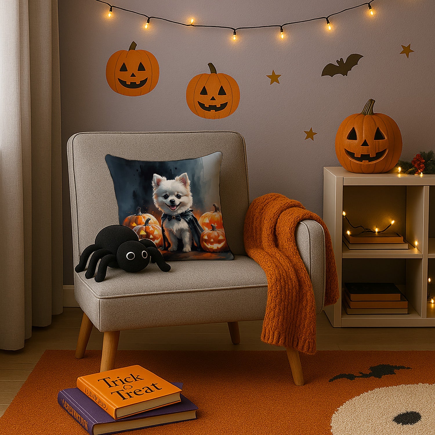 Throw Pillow featuring breed specific Pomeranian artwork. Celebrate Halloween with this Halloween Pillow. Add a touch of vibrancy and comfort to your outdoor seating with Caroline's Treasures Fabric Decorative Pillow. Measuring approximately 14 inches by 14 inches, this outdoor pillow is crafted to elevate the appeal of your patio furniture, infusing it with vivid color and artistic flair. The pillow includes a 100% Polyester Fabric sham filled with a quality pillow form to provide superior comfort. Innovatively made from our brand new material, specifically woven for its water resistance, this pillow is designed for durability. The soft canvas fabric offers versatility in use, fit for your indoor couch or your outdoor patio, porch, or veranda. The fabric is dyed with colorfast dyes built for resilience against weather conditions, ensuring the pillow retains its beauty over time. Constructed by sewing three fabric pieces to create a sham, the polyester insert is then nestled inside to form the pillow, resulting in an overstuffed pillow that maintains its shape. Both the sham and the pillow insert are proudly made in the United States. As the pillows are handcrafted, there may be minor variations in size, further enhancing their unique charm. Experience comfort in style with Caroline's Treasures Fabric Decorative Pillow.