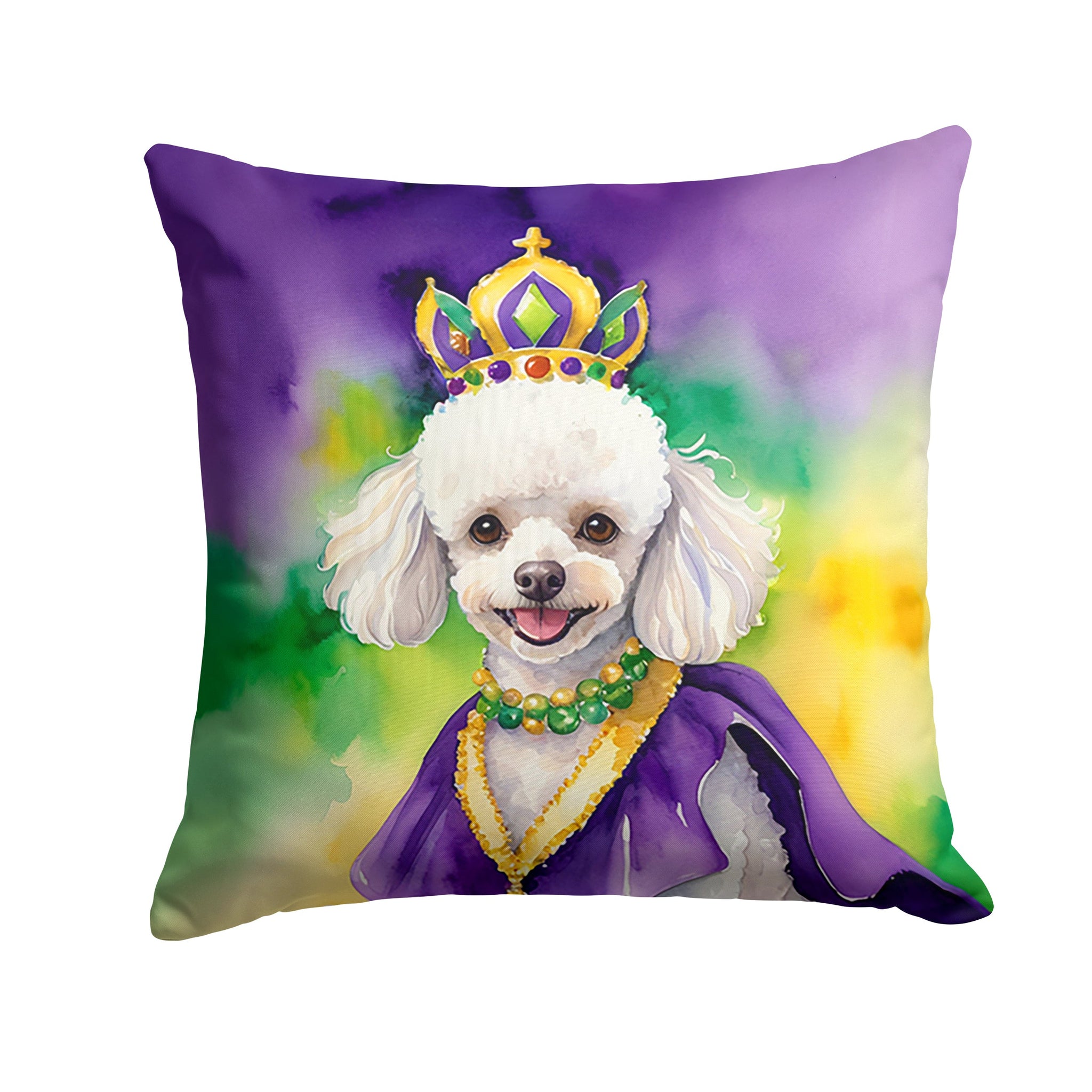 White Poodle King of Mardi Gras Throw Pillow - 14x14 Decorative Pillow – Art for Your Home & Patio