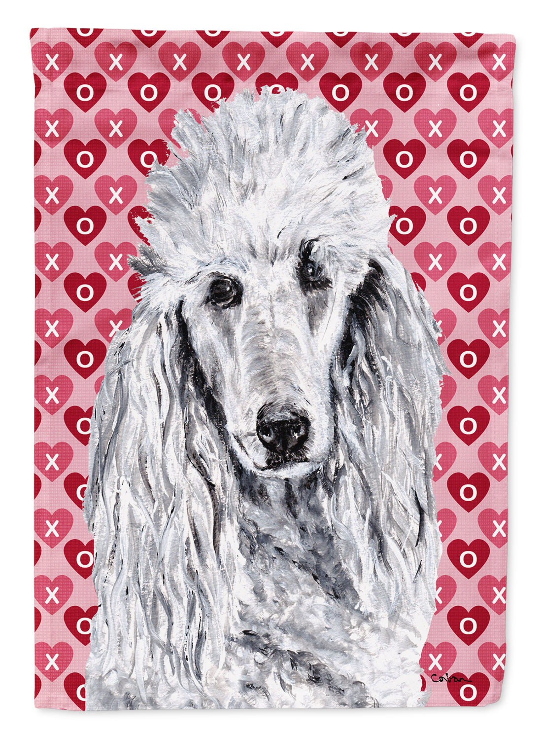 Decorate your space with our Valentine's Day Poodle artwork on a Garden Flag. Enhance the beauty of your garden, patio, or yard with Caroline's Treasures Decorative Garden Flag, proudly made in the USA. Crafted from two pieces of thick, double-sided polyester fabric, this 2-ply garden flag is designed to withstand various weather conditions, making it water-resistant and weatherproof. Featuring correctly readable words on both sides, this garden flag offers a delightful visual experience from any angle. With its heavier weight, it stands out among other garden flags, ensuring stability and durability even in wind, rain, and snow. Measuring approximately 11 1/4 inches by 15 1/2 inches, this flag allows you to personalize your outdoor decor. It comes with a 1 1/2-inch sleeve sewn in, allowing easy attachment to any standard garden flag stand or garden size porch hanger (sold separately). Make a statement in your outdoor space with Caroline's Treasures Decorative Garden Flag, a vibrant and high-quality flag that adds color and personality to your surroundings. Proudly made in the USA, it's a symbol of quality craftsmanship and attention to detail.