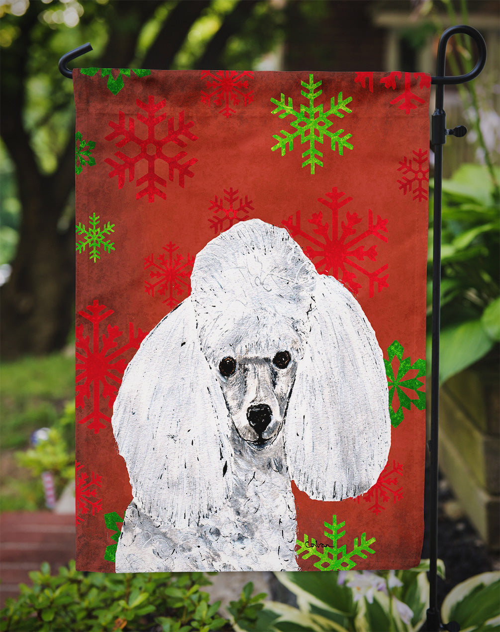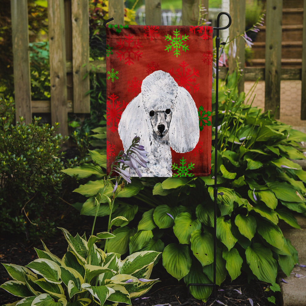 White Toy Poodle Red Snowflakes Holiday Garden Flag - Outdoor Decorative Yard Flag SC9749GF