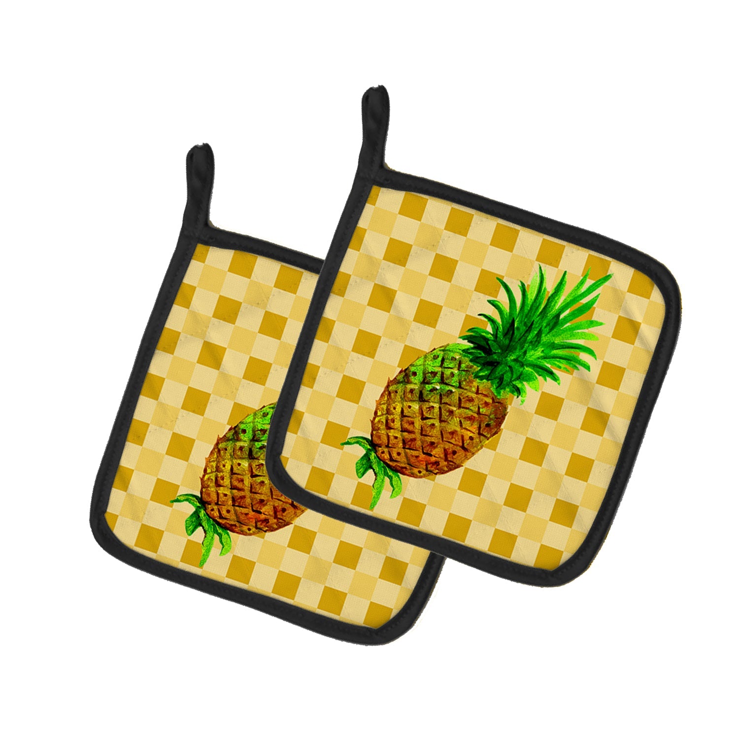 Whole Pineapple on Basketweave Pot Holders - Set of 2 - Heat-Resistant Kitchen Essentials BB7246PTHD