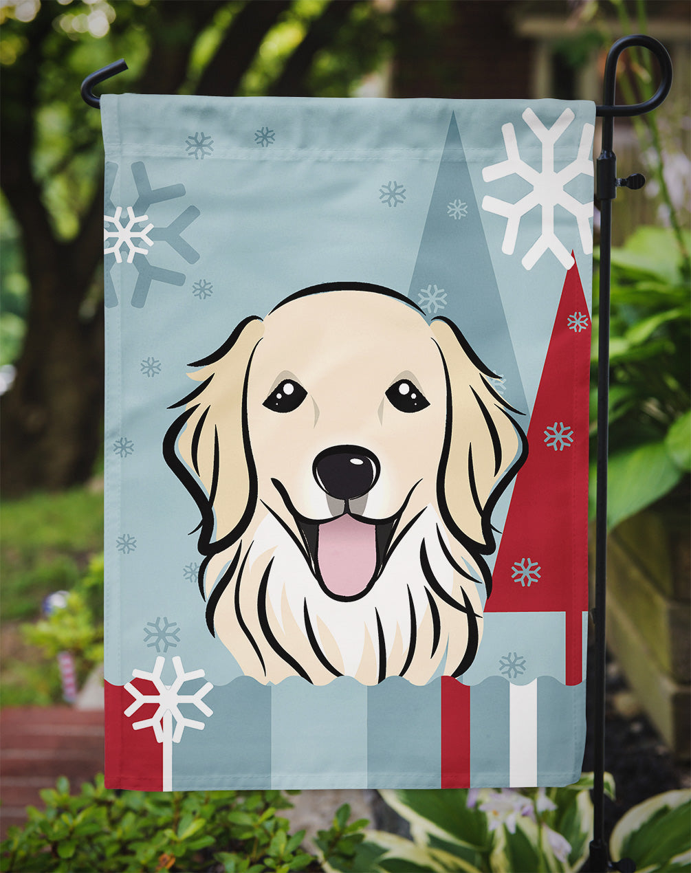 Decorate your space with our Golden Retriever artwork on a Garden Flag. Bring a bit of Winter into your home with a Winter Garden Flag. Enhance the beauty of your garden, patio, or yard with Caroline's Treasures Decorative Garden Flag, proudly made in the USA. Crafted from two pieces of thick, double-sided polyester fabric, this 2-ply garden flag is designed to withstand various weather conditions, making it water-resistant and weatherproof. Featuring correctly readable words on both sides, this garden flag offers a delightful visual experience from any angle. With its heavier weight, it stands out among other garden flags, ensuring stability and durability even in wind, rain, and snow. Measuring approximately 11 1/4 inches by 15 1/2 inches, this flag allows you to personalize your outdoor decor. It comes with a 1 1/2-inch sleeve sewn in, allowing easy attachment to any standard garden flag stand or garden size porch hanger (sold separately). Make a statement in your outdoor space with Caroline's Treasures Decorative Garden Flag, a vibrant and high-quality flag that adds color and personality to your surroundings. Proudly made in the USA, it's a symbol of quality craftsmanship and attention to detail.