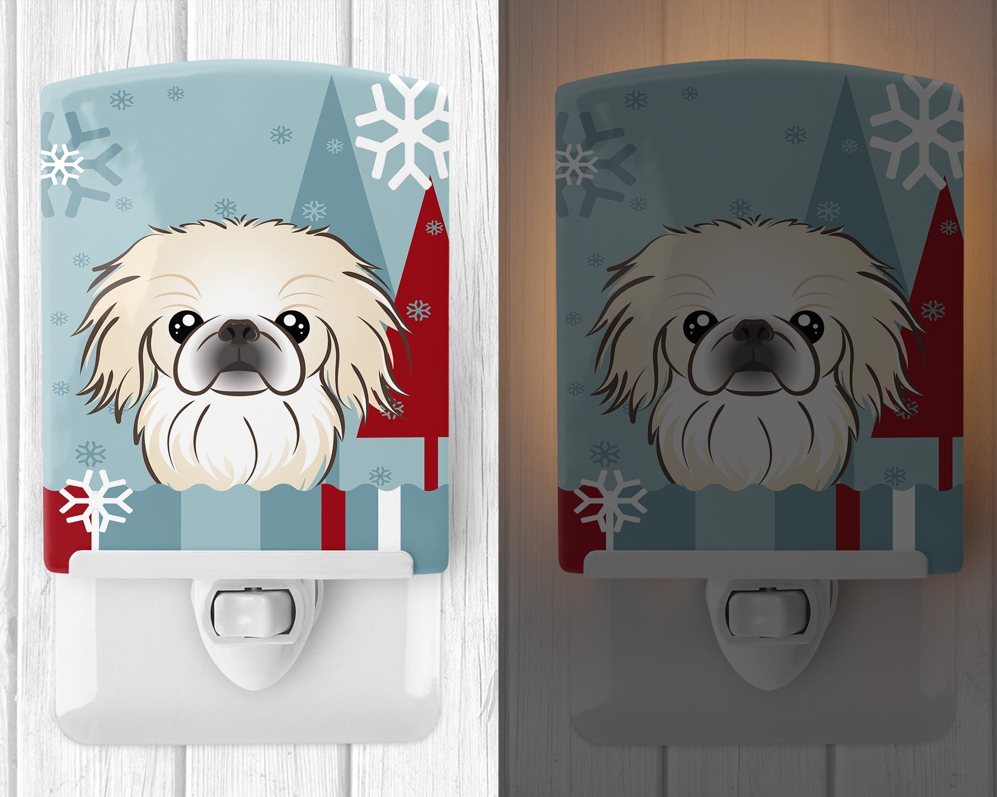 Decorate your space with our Pekingese artwork on a Night Light. Bring a bit of Winter into your home with a Winter Night Light. Introduce a splash of artistic flair and subtle illumination to your space with the Decorative Ceramic Night Light from Caroline's Treasures. Perfect for any room, this night light seamlessly blends functionality with an aesthetic appeal, offering a stylish solution to brighten up dark corners of your home or office. Boasting a six-inch high by four-inch wide ceramic tile at the front, it showcases vivid, full-color artwork from distinguished artists, transforming a simple utility into a vibrant art piece. The artwork is securely encased in a robust metal holder, ensuring durability and longevity. Two screws are provided to firmly affix the tile into the holder. The holder extends three inches deep, housing an included bulb that emits a soft, welcoming glow. This product meets all safety standards, as evidenced by its UL approval. Proudly made in the United States from imported components, this Decorative Ceramic Night Light is not just a functional device; it's a statement piece that enhances the ambiance of your surroundings.