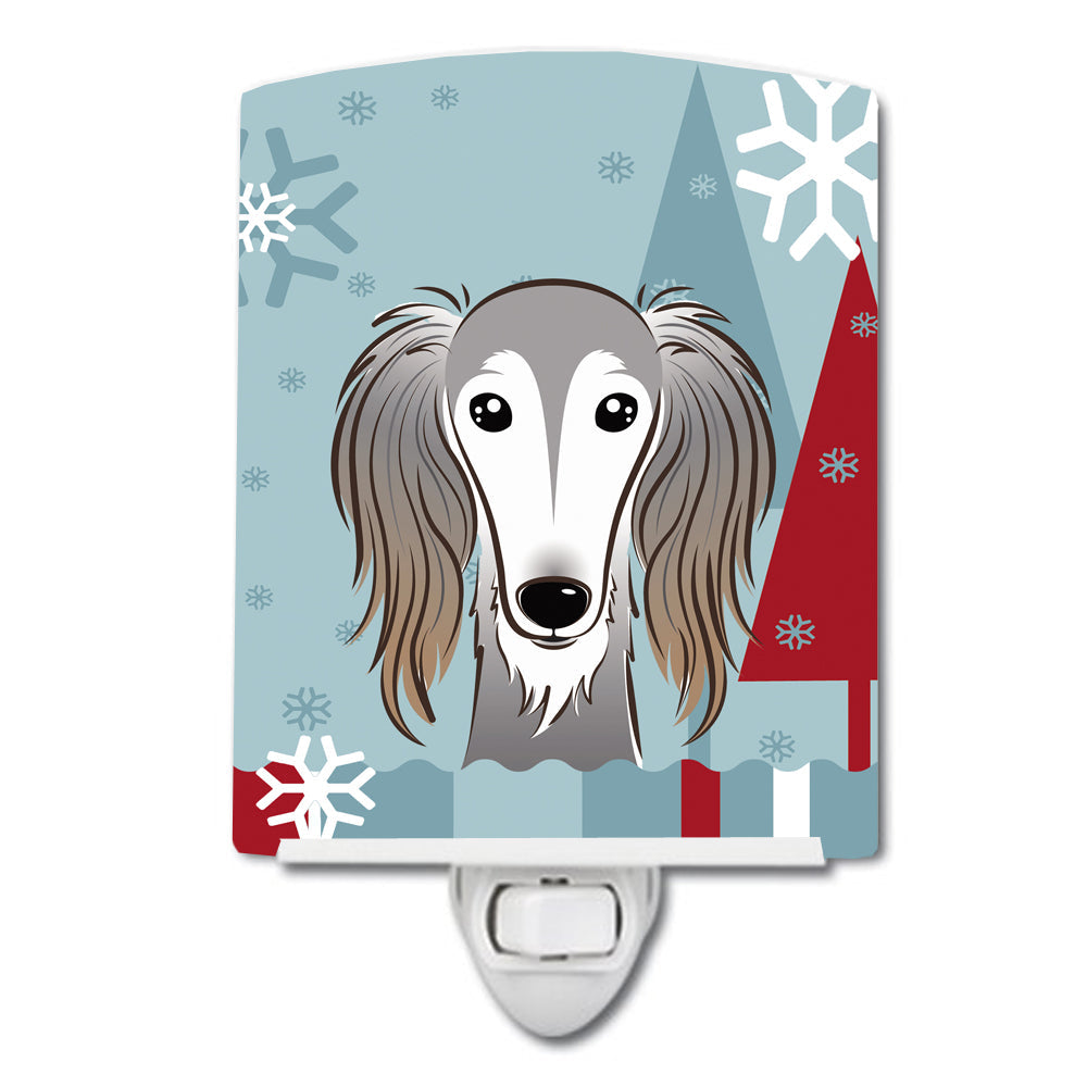 Decorate your space with our Saluki artwork on a Night Light. Bring a bit of Winter into your home with a Winter Night Light. Introduce a splash of artistic flair and subtle illumination to your space with the Decorative Ceramic Night Light from Caroline's Treasures. Perfect for any room, this night light seamlessly blends functionality with an aesthetic appeal, offering a stylish solution to brighten up dark corners of your home or office. Boasting a six-inch high by four-inch wide ceramic tile at the front, it showcases vivid, full-color artwork from distinguished artists, transforming a simple utility into a vibrant art piece. The artwork is securely encased in a robust metal holder, ensuring durability and longevity. Two screws are provided to firmly affix the tile into the holder. The holder extends three inches deep, housing an included bulb that emits a soft, welcoming glow. This product meets all safety standards, as evidenced by its UL approval. Proudly made in the United States from imported components, this Decorative Ceramic Night Light is not just a functional device; it's a statement piece that enhances the ambiance of your surroundings.