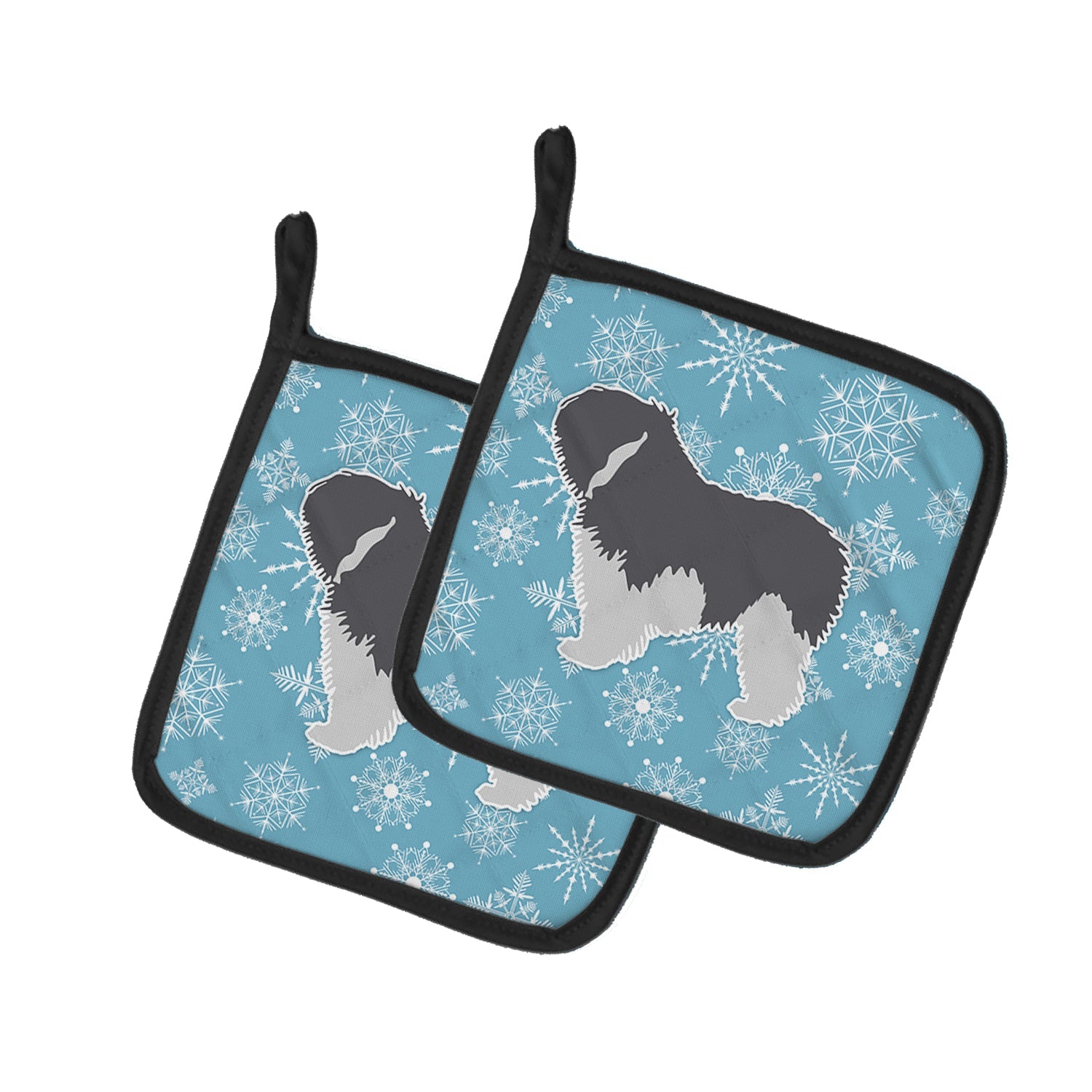 Decorate your space with our Christmas Polish Lowland Sheepdog artwork on a Pair of Pot Holders. Bring a bit of Winter into your home with a Winter Pair of Pot Holders. A Pair of Pot Holders to match your kitchen decor. Made in the USA these are thick and functional. Full color artwork decorates the front polyester fabric of the hot pad and accented by a black trim. Use these at as a trivet for your Thanksgiving or Christmas tablescape. Filled with insulated fabric and quilted for durability. These colorful pot holders will make a great gift for your favorite home cook or executive chef. Each pot holder measures approximately 7 1/2 inches by 7 1/2 inches. A hanging tab is included.