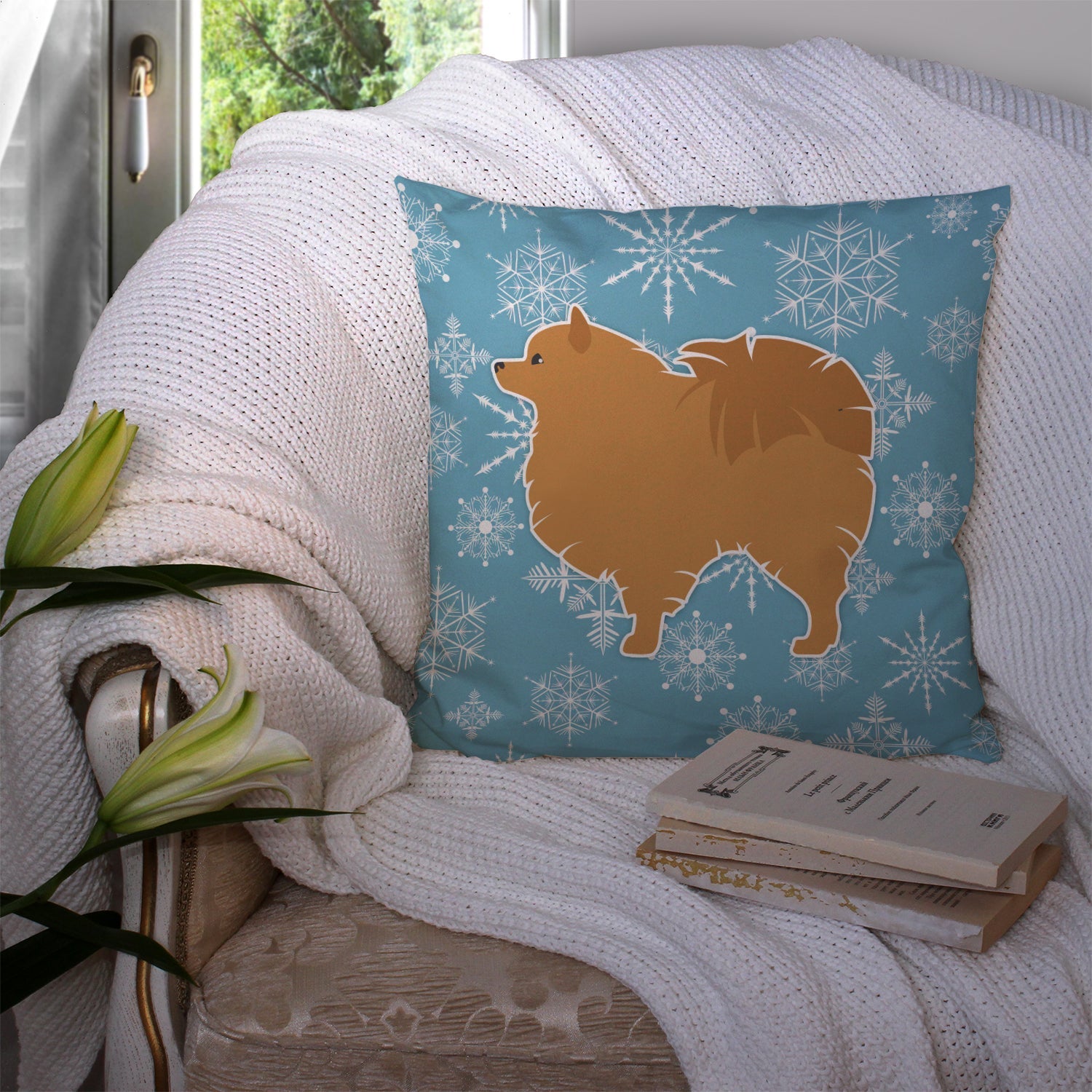 Decorate your space with our Christmas Pomeranian artwork on a Pillow. Bring a bit of Winter into your home with a Winter Pillow. Add a touch of vibrancy and comfort to your outdoor seating with Caroline's Treasures Fabric Decorative Pillow. Measuring approximately 14 inches by 14 inches, this outdoor pillow is crafted to elevate the appeal of your patio furniture, infusing it with vivid color and artistic flair. The pillow includes a 100% Polyester Fabric sham filled with a quality pillow form to provide superior comfort. Innovatively made from our brand new material, specifically woven for its water resistance, this pillow is designed for durability. The soft canvas fabric offers versatility in use, fit for your indoor couch or your outdoor patio, porch, or veranda. The fabric is dyed with colorfast dyes built for resilience against weather conditions, ensuring the pillow retains its beauty over time. Constructed by sewing three fabric pieces to create a sham, the polyester insert is then nestled inside to form the pillow, resulting in an overstuffed pillow that maintains its shape. Both the sham and the pillow insert are proudly made in the United States. As the pillows are handcrafted, there may be minor variations in size, further enhancing their unique charm. Experience comfort in style with Caroline's Treasures Fabric Decorative Pillow.
