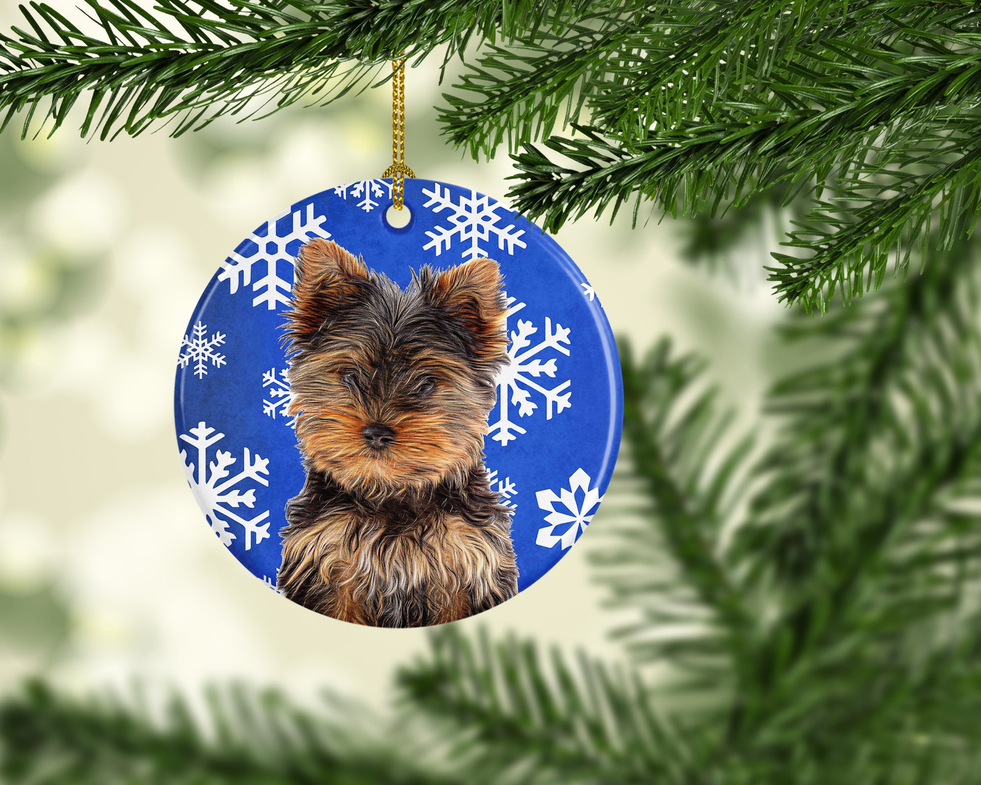 Decorate your space with our Christmas Yorkshire Terrier artwork on a Ornament. Bring a bit of Winter into your home with a Winter Ornament. Add a touch of personalized charm to your Christmas tree this holiday season with our Ceramic Ornament. Measuring 2.8125 inches in diameter, this round porcelain ornament beautifully reflects your festive lights, enhancing your holiday decor. The gloss surface sets off the vibrant, full-color artwork contributed by one of our talented artists, bringing a pop of color and joy to your tree. This Ceramic Ornament doesn't stop at being merely decorative. The white back is designed for personalization. Write a heartfelt message, mark a special year, or inscribe a date with a paint pen or a permanent marker to create a treasured memento. Please ensure you allow any personalization to dry thoroughly before handling to maintain the pristine finish. Included with the ornament is a delicate gold cord for easy hanging. Made in the USA, this Ceramic Ornament makes an exceptional gift for a pet sitter, teacher, family member, or anyone you wish to share a little Christmas magic with. With its blend of style, charm, and personal touch, it's a meaningful addition to any Christmas tree.