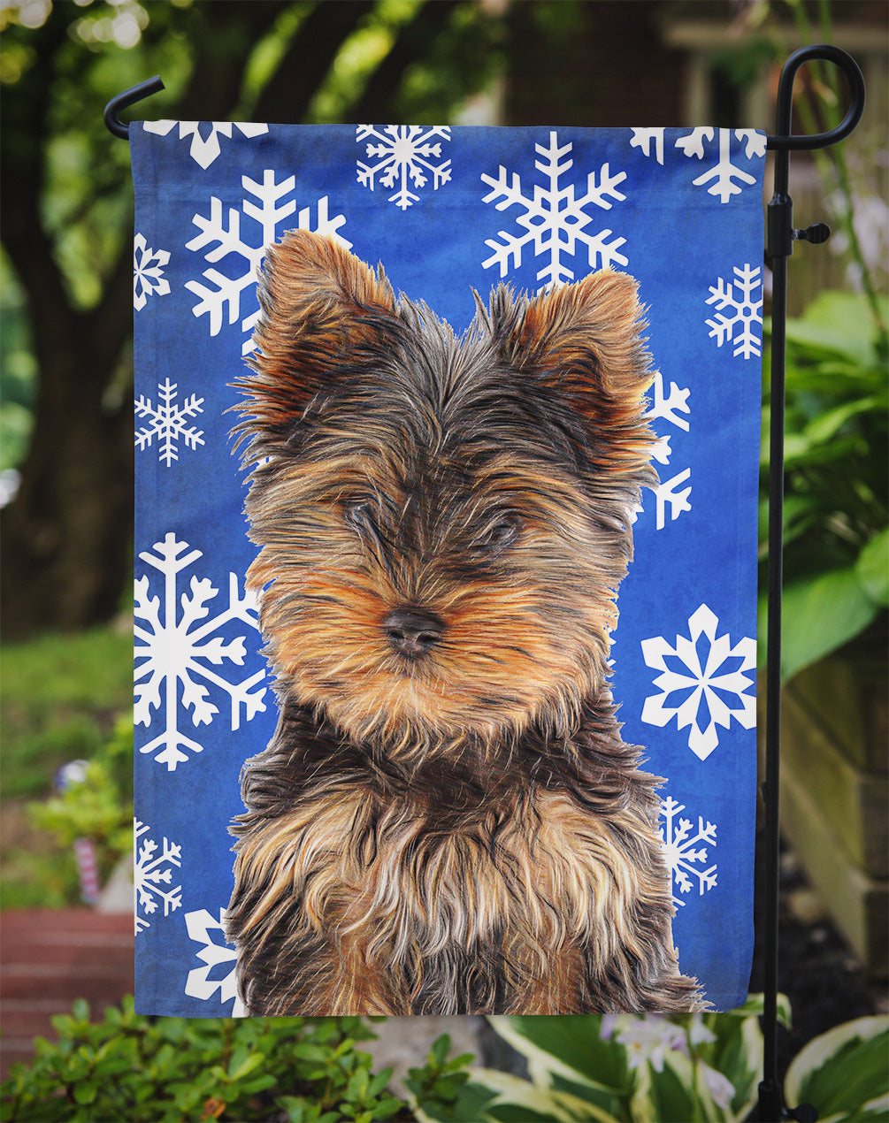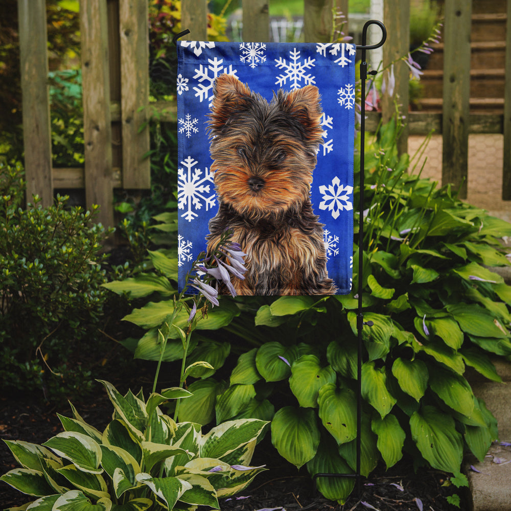 Decorate your space with our Christmas Yorkshire Terrier artwork on a Garden Flag. Bring a bit of Winter into your home with a Winter Garden Flag. Enhance the beauty of your garden, patio, or yard with Caroline's Treasures Decorative Garden Flag, proudly made in the USA. Crafted from two pieces of thick, double-sided polyester fabric, this 2-ply garden flag is designed to withstand various weather conditions, making it water-resistant and weatherproof. Featuring correctly readable words on both sides, this garden flag offers a delightful visual experience from any angle. With its heavier weight, it stands out among other garden flags, ensuring stability and durability even in wind, rain, and snow. Measuring approximately 11 1/4 inches by 15 1/2 inches, this flag allows you to personalize your outdoor decor. It comes with a 1 1/2-inch sleeve sewn in, allowing easy attachment to any standard garden flag stand or garden size porch hanger (sold separately). Make a statement in your outdoor space with Caroline's Treasures Decorative Garden Flag, a vibrant and high-quality flag that adds color and personality to your surroundings. Proudly made in the USA, it's a symbol of quality craftsmanship and attention to detail.