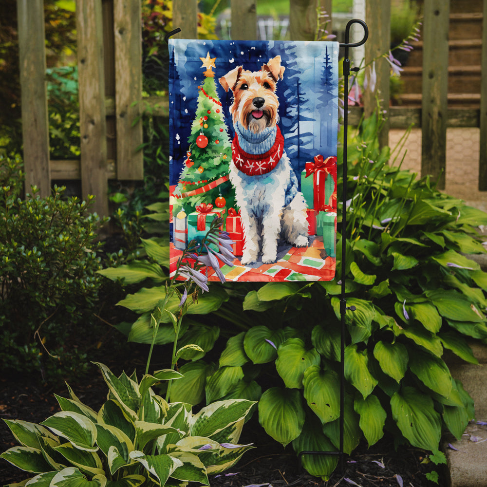 Decorate your space with our Christmas Wire Fox Terrier artwork on a Garden Flag. Enhance the beauty of your garden, patio, or yard with Caroline's Treasures Decorative Garden Flag, proudly made in the USA. Crafted from two pieces of thick, double-sided polyester fabric, this 2-ply garden flag is designed to withstand various weather conditions, making it water-resistant and weatherproof. Featuring correctly readable words on both sides, this garden flag offers a delightful visual experience from any angle. With its heavier weight, it stands out among other garden flags, ensuring stability and durability even in wind, rain, and snow. Measuring approximately 11 1/4 inches by 15 1/2 inches, this flag allows you to personalize your outdoor decor. It comes with a 1 1/2-inch sleeve sewn in, allowing easy attachment to any standard garden flag stand or garden size porch hanger (sold separately). Make a statement in your outdoor space with Caroline's Treasures Decorative Garden Flag, a vibrant and high-quality flag that adds color and personality to your surroundings. Proudly made in the USA, it's a symbol of quality craftsmanship and attention to detail.