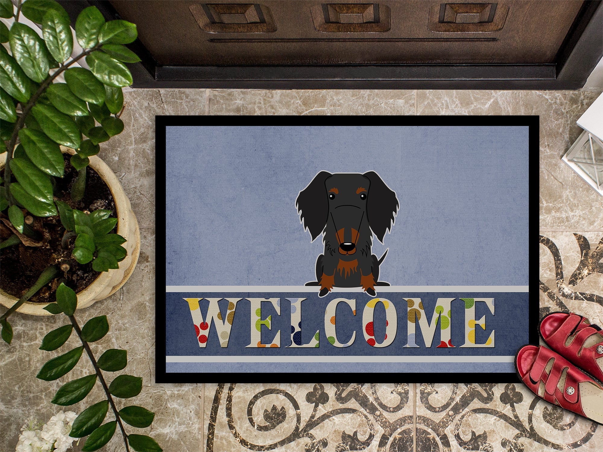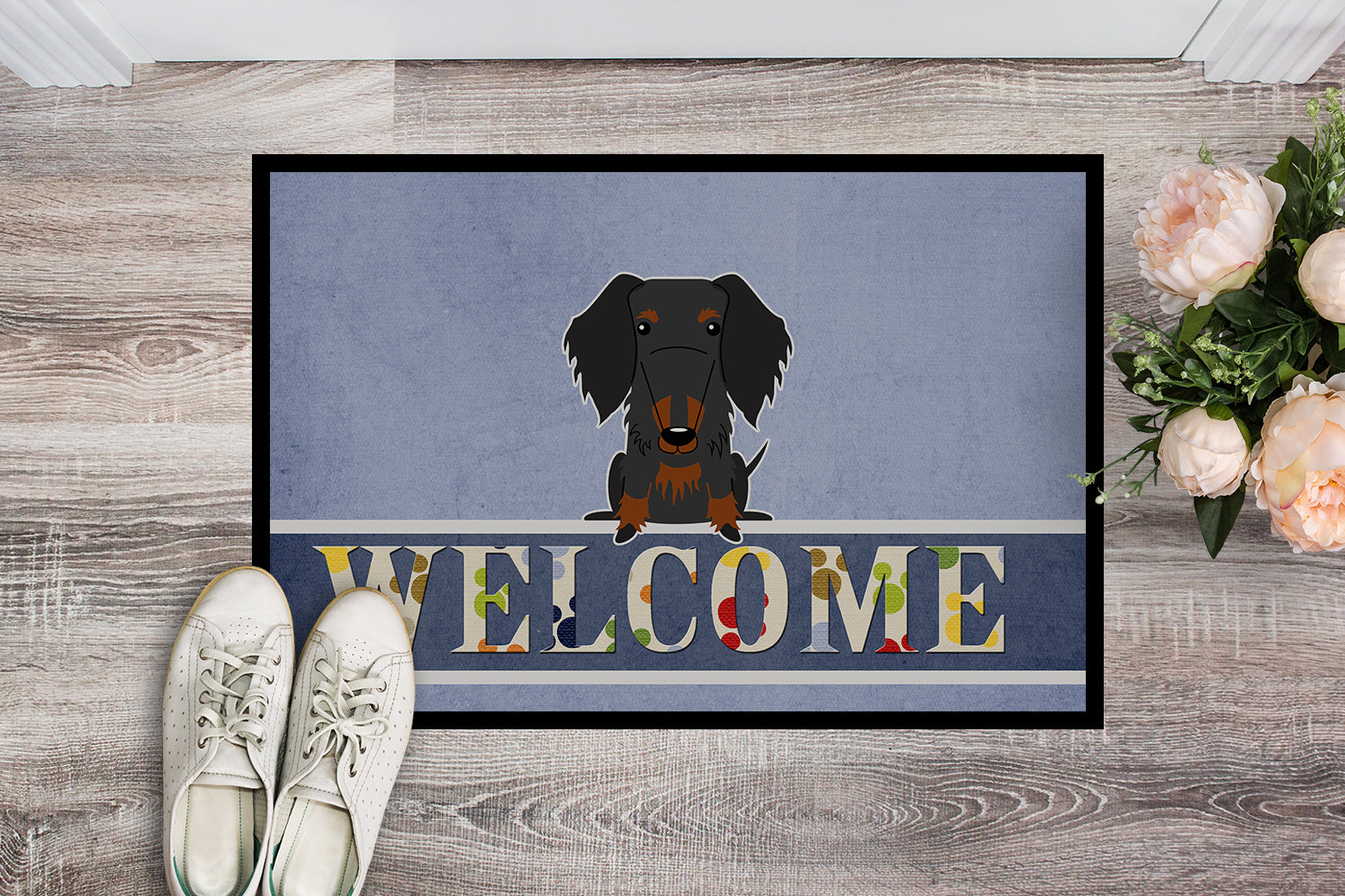 Wire Haired Dachshund Black Tan Welcome Doormat - 18x27 Decorative Floor Mat – Indoor/Outdoor Rug with Artistic Flair BB5708MAT
