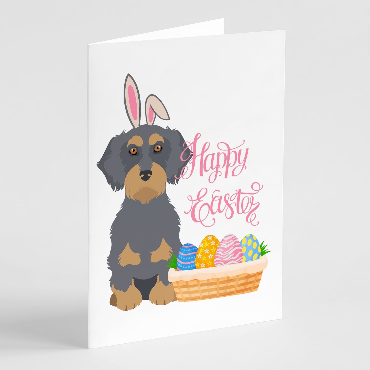 Wirehair Blue and Tan Dachshund Easter Greeting Cards - Blank Note Cards – 8-Pack of Artist-Designed Cards with Envelopes