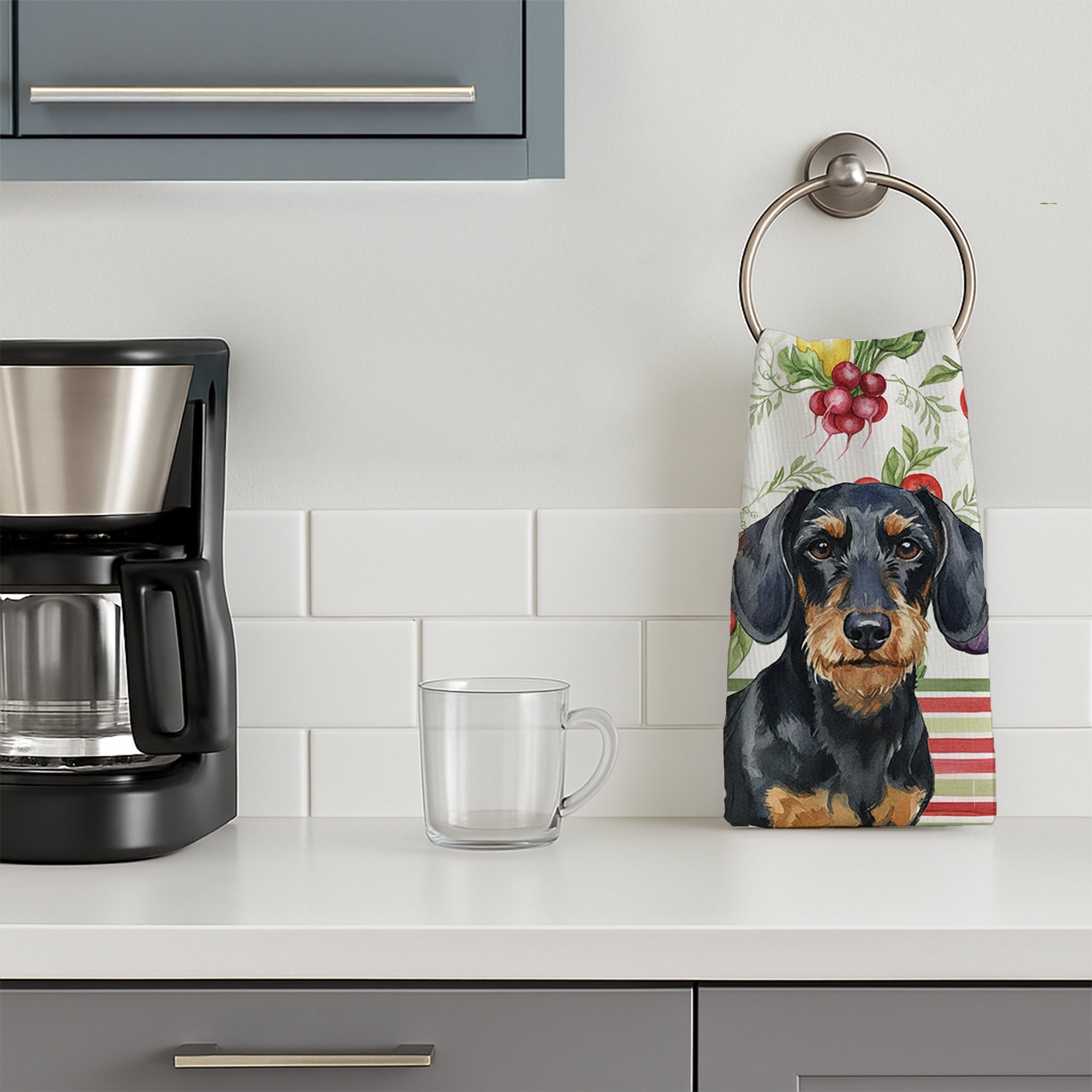 Wirehaired Black and Tan Dachshund Vegetables Kitchen Towel