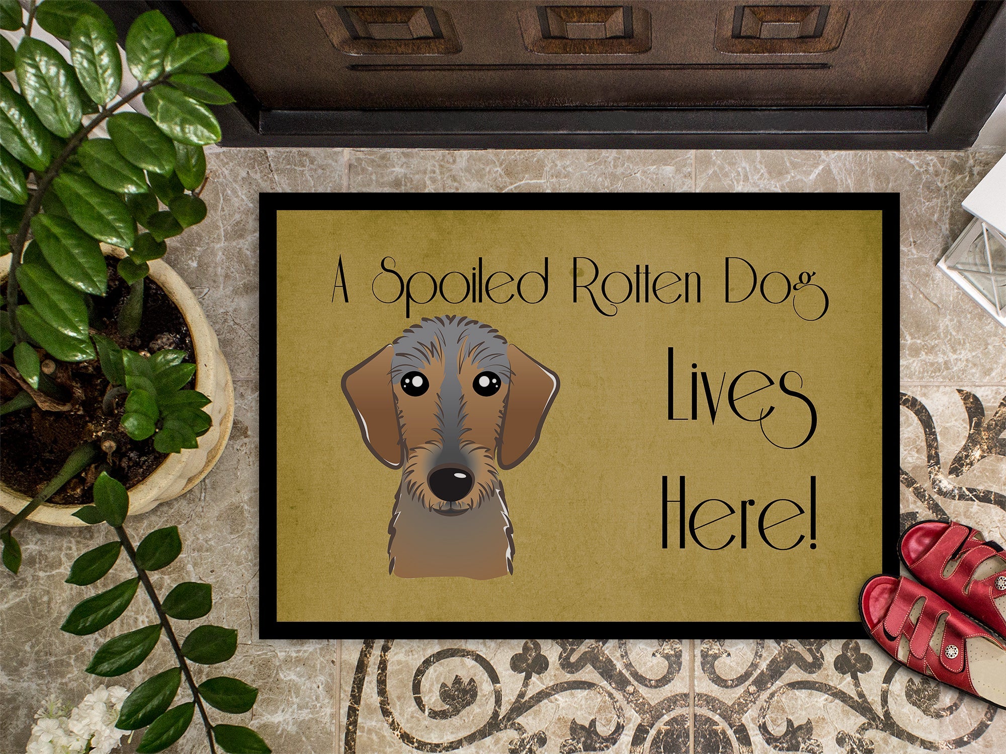 Wirehaired Dachshund Spoiled Dog Lives Here Doormat - 24x36 Decorative Floor Mat – Indoor/Outdoor Rug with Artistic Flair BB1481JMAT