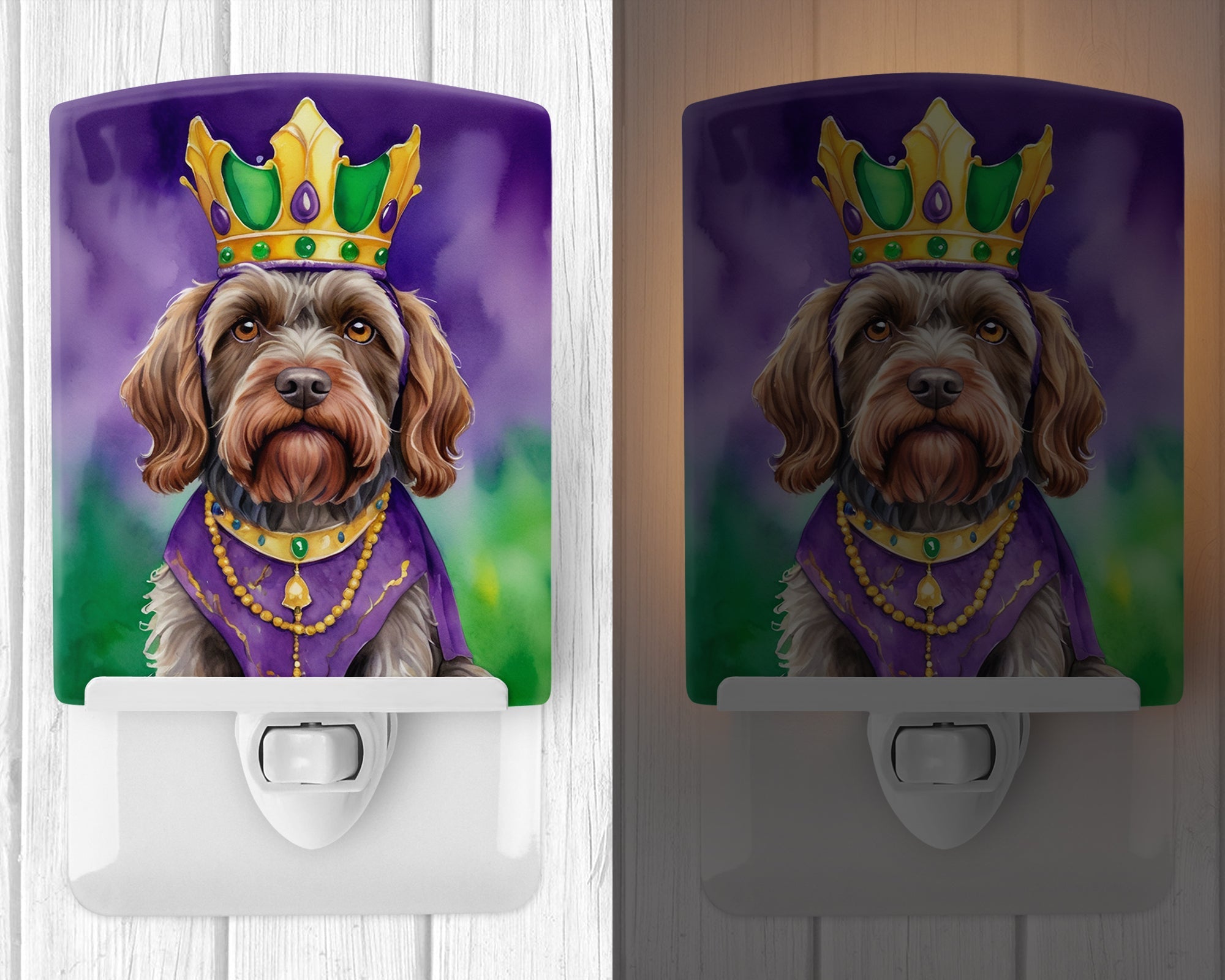Decorate your space with our Mardi Gras Wirehaired Pointing Griffon artwork on a Night Light. Introduce a splash of artistic flair and subtle illumination to your space with the Decorative Ceramic Night Light from Caroline's Treasures. Perfect for any room, this night light seamlessly blends functionality with an aesthetic appeal, offering a stylish solution to brighten up dark corners of your home or office. Boasting a six-inch high by four-inch wide ceramic tile at the front, it showcases vivid, full-color artwork from distinguished artists, transforming a simple utility into a vibrant art piece. The artwork is securely encased in a robust metal holder, ensuring durability and longevity. Two screws are provided to firmly affix the tile into the holder. The holder extends three inches deep, housing an included bulb that emits a soft, welcoming glow. This product meets all safety standards, as evidenced by its UL approval. Proudly made in the United States from imported components, this Decorative Ceramic Night Light is not just a functional device; it's a statement piece that enhances the ambiance of your surroundings.