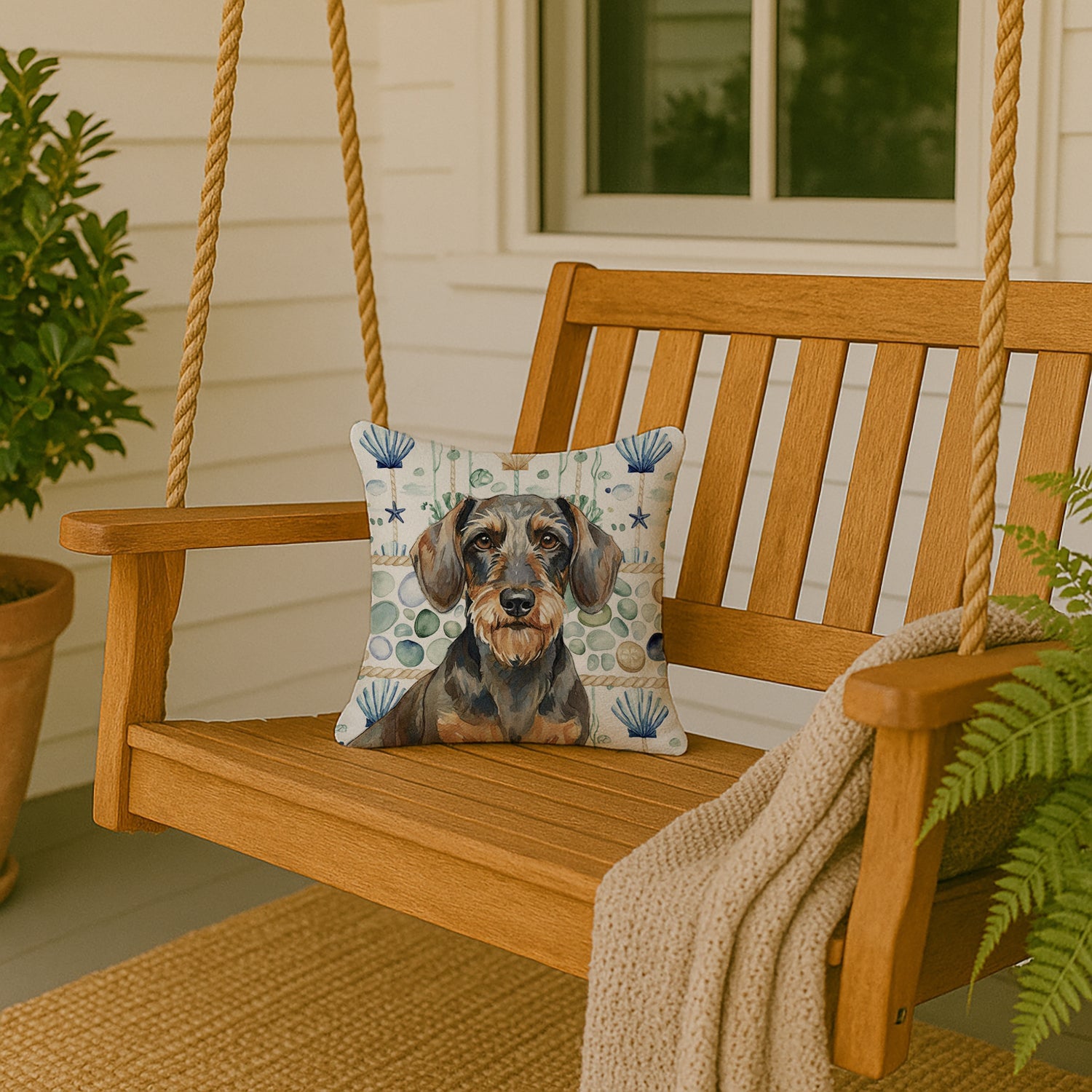 Throw Pillow featuring breed specific Dachshund artwork. Add a touch of vibrancy and comfort to your outdoor seating with Caroline's Treasures Fabric Decorative Pillow. Measuring approximately 14 inches by 14 inches, this outdoor pillow is crafted to elevate the appeal of your patio furniture, infusing it with vivid color and artistic flair. The pillow includes a 100% Polyester Fabric sham filled with a quality pillow form to provide superior comfort. Innovatively made from our brand new material, specifically woven for its water resistance, this pillow is designed for durability. The soft canvas fabric offers versatility in use, fit for your indoor couch or your outdoor patio, porch, or veranda. The fabric is dyed with colorfast dyes built for resilience against weather conditions, ensuring the pillow retains its beauty over time. Constructed by sewing three fabric pieces to create a sham, the polyester insert is then nestled inside to form the pillow, resulting in an overstuffed pillow that maintains its shape. Both the sham and the pillow insert are proudly made in the United States. As the pillows are handcrafted, there may be minor variations in size, further enhancing their unique charm. Experience comfort in style with Caroline's Treasures Fabric Decorative Pillow.