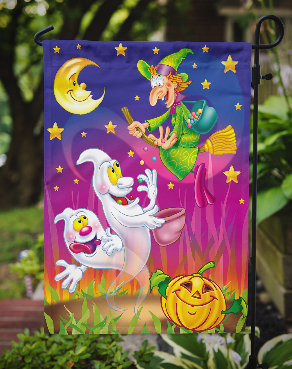 Decorate your space with our Halloween artwork on a Garden Flag. Enhance the beauty of your garden, patio, or yard with Caroline's Treasures Decorative Garden Flag, proudly made in the USA. Crafted from two pieces of thick, double-sided polyester fabric, this 2-ply garden flag is designed to withstand various weather conditions, making it water-resistant and weatherproof. Featuring correctly readable words on both sides, this garden flag offers a delightful visual experience from any angle. With its heavier weight, it stands out among other garden flags, ensuring stability and durability even in wind, rain, and snow. Measuring approximately 11 1/4 inches by 15 1/2 inches, this flag allows you to personalize your outdoor decor. It comes with a 1 1/2-inch sleeve sewn in, allowing easy attachment to any standard garden flag stand or garden size porch hanger (sold separately). Make a statement in your outdoor space with Caroline's Treasures Decorative Garden Flag, a vibrant and high-quality flag that adds color and personality to your surroundings. Proudly made in the USA, it's a symbol of quality craftsmanship and attention to detail.