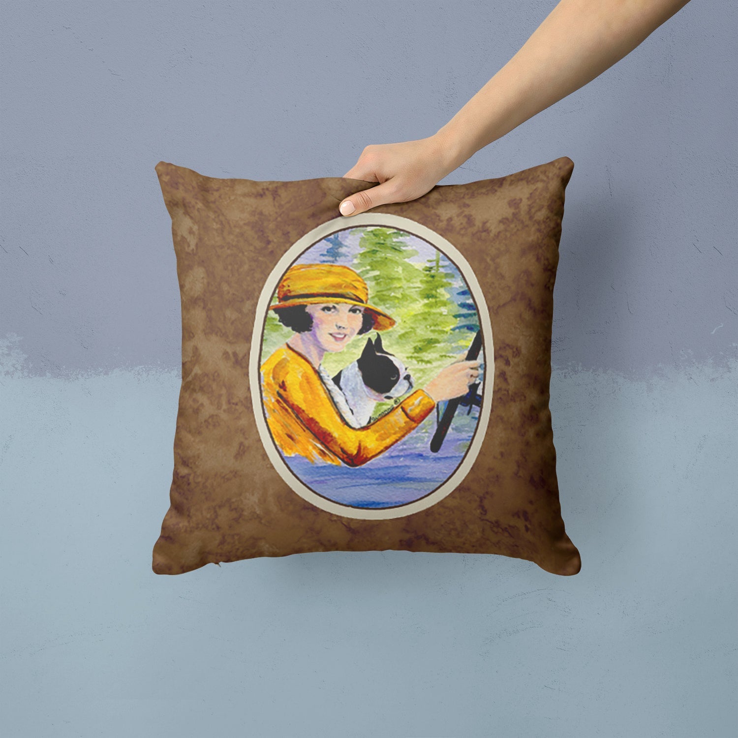 Woman driving with her Boston Terrier Throw Pillow - 14x14 Decorative Pillow – Art for Your Home & Patio
