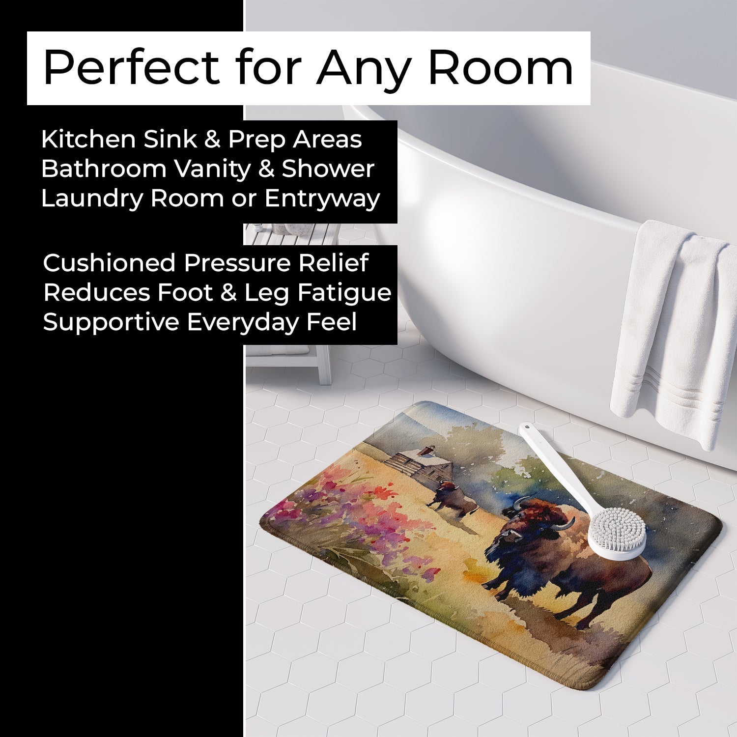 Shown here is the Wood Bison Memory Foam Kitchen Mat from Caroline's Treasures featuring artwork of a Wood Bison in a Everyday design. The detailed illustration and vibrant colors make it a standout accent that celebrates both seasonal style and love for the subject. Bring the beauty of nature indoors with our Watercolor Wildlife Collection. Featuring artistic, hand-painted wildlife designs in soft watercolor tones, this collection adds serene charm and uplifting style to home décor and thoughtful gifts for nature lovers. Everyday décor celebrates personal style and the small moments that make a house feel like home. Thoughtful designs add warmth and personality that can be enjoyed year-round. Transform your floor into a work of art with Caroline's Treasures' Memory Foam Mat. This mat offers not only a stunning visual appeal but also a luxurious, plush feel that's incredibly comfortable to the touch. It's a versatile, machine-washable mat designed for both bath and kitchen use, ensuring you experience the best in comfort and convenience. Care Instructions: Maintaining this memory foam mat is a breeze. Simply follow the care instructions on the product tag. It's recommended to wash in cold water and dry on a low-temperature setting in the dryer. This ensures the mat retains its quality and longevity, allowing you to enjoy its beauty and comfort for a long time. Caroline's Treasures' Memory Foam Mat Machine Washable is the perfect blend of artistry, comfort, and practicality, making it a standout addition to any space. Upgrade your home decor with this versatile and stylish mat today. Wood bison are massive animals with heavy coats and broad frames. Their presence reflects endurance and heritage. Makes a heartfelt gift for: Wood Bison owners, Wild Animals lovers, Everyday gifts, pet parents, friends who adore their Wood Bison, or anyone celebrating Wild Animals.