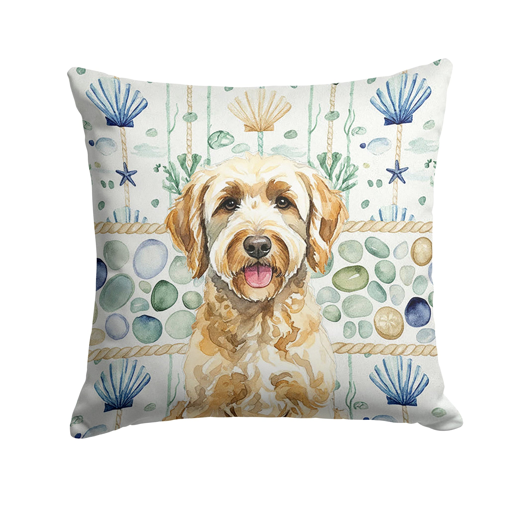 Throw Pillow featuring breed specific Labradoodle artwork. Add a touch of vibrancy and comfort to your outdoor seating with Caroline's Treasures Fabric Decorative Pillow. Measuring approximately 14 inches by 14 inches, this outdoor pillow is crafted to elevate the appeal of your patio furniture, infusing it with vivid color and artistic flair. The pillow includes a 100% Polyester Fabric sham filled with a quality pillow form to provide superior comfort. Innovatively made from our brand new material, specifically woven for its water resistance, this pillow is designed for durability. The soft canvas fabric offers versatility in use, fit for your indoor couch or your outdoor patio, porch, or veranda. The fabric is dyed with colorfast dyes built for resilience against weather conditions, ensuring the pillow retains its beauty over time. Constructed by sewing three fabric pieces to create a sham, the polyester insert is then nestled inside to form the pillow, resulting in an overstuffed pillow that maintains its shape. Both the sham and the pillow insert are proudly made in the United States. As the pillows are handcrafted, there may be minor variations in size, further enhancing their unique charm. Experience comfort in style with Caroline's Treasures Fabric Decorative Pillow.