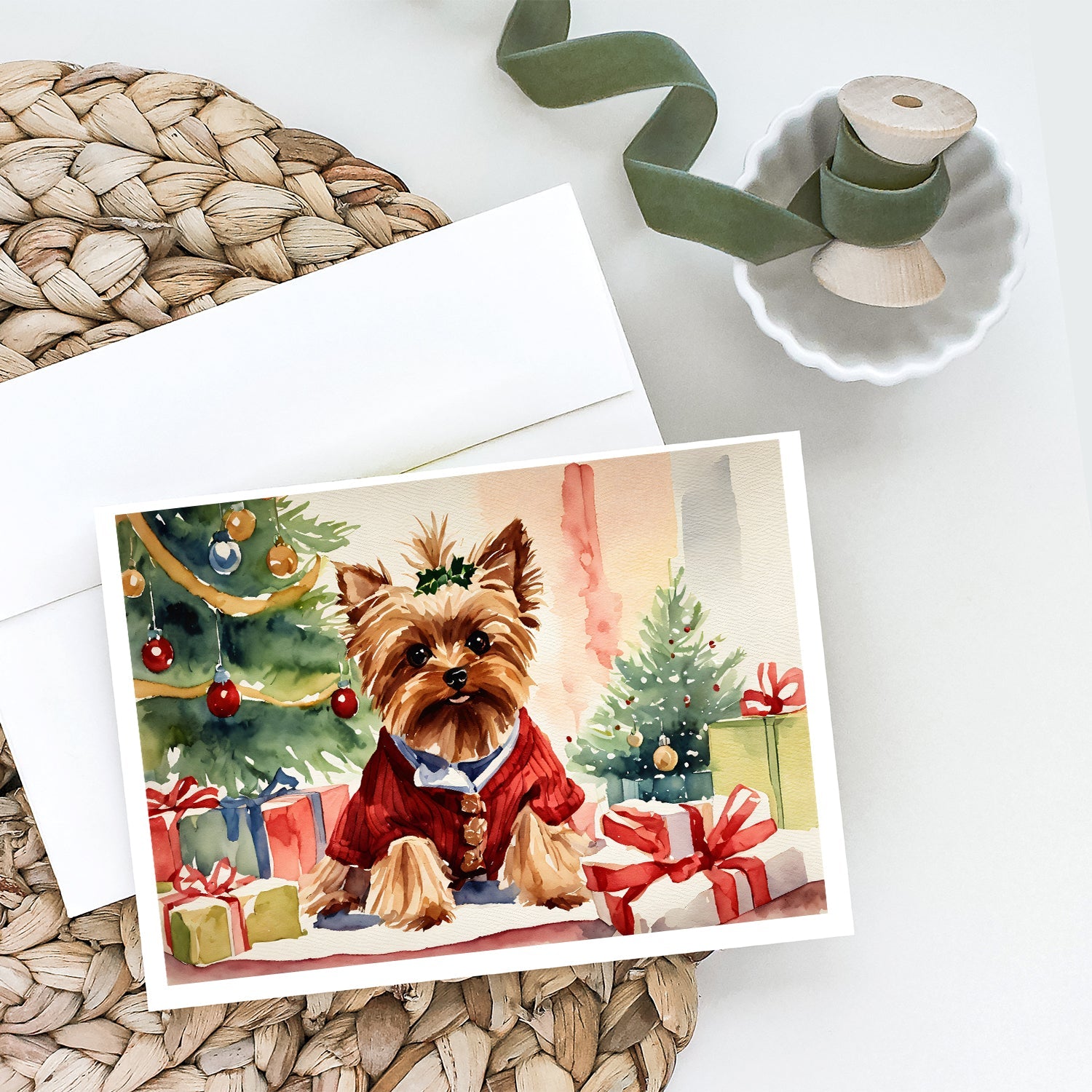 Decorate your space with our Christmas Yorkshire Terrier artwork on a . Celebrate special moments with Caroline's Treasures Printed Greeting Card Pack. This pack includes eight beautifully folded 5x7 cards, accompanied by eight matching white envelopes. With blank interiors, these cards provide ample space for your personalized messages and heartfelt holiday greetings. Each card features captivating full-color artwork, meticulously printed in our facility on high-quality 80 lb cover stock or 216 GSM. The super smooth finish of the white cards enhances the visual impact of the artwork, creating a truly stunning presentation. Designed by our talented in-house artists or licensed artists, the artwork on these cards showcases their creativity and attention to detail. From vibrant illustrations to captivating designs, each card tells its own unique story. Whether it's for birthdays, anniversaries, holidays, or any special occasion, Caroline's Treasures Greeting Card Pack is the perfect way to convey your heartfelt sentiments. Share joy, love, and warm wishes with these exquisite cards and make every moment unforgettable.