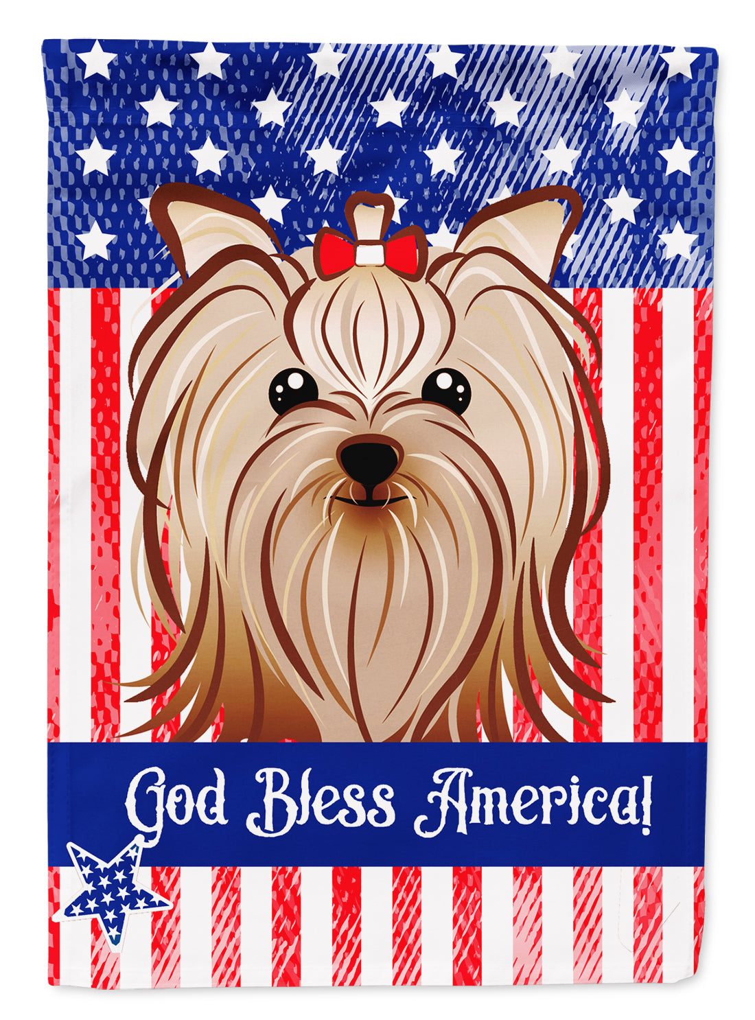 Decorate your space with our Yorkshire Terrier artwork on a Garden Flag. Enhance the beauty of your garden, patio, or yard with Caroline's Treasures Decorative Garden Flag, proudly made in the USA. Crafted from two pieces of thick, double-sided polyester fabric, this 2-ply garden flag is designed to withstand various weather conditions, making it water-resistant and weatherproof. Featuring correctly readable words on both sides, this garden flag offers a delightful visual experience from any angle. With its heavier weight, it stands out among other garden flags, ensuring stability and durability even in wind, rain, and snow. Measuring approximately 11 1/4 inches by 15 1/2 inches, this flag allows you to personalize your outdoor decor. It comes with a 1 1/2-inch sleeve sewn in, allowing easy attachment to any standard garden flag stand or garden size porch hanger (sold separately). Make a statement in your outdoor space with Caroline's Treasures Decorative Garden Flag, a vibrant and high-quality flag that adds color and personality to your surroundings. Proudly made in the USA, it's a symbol of quality craftsmanship and attention to detail.